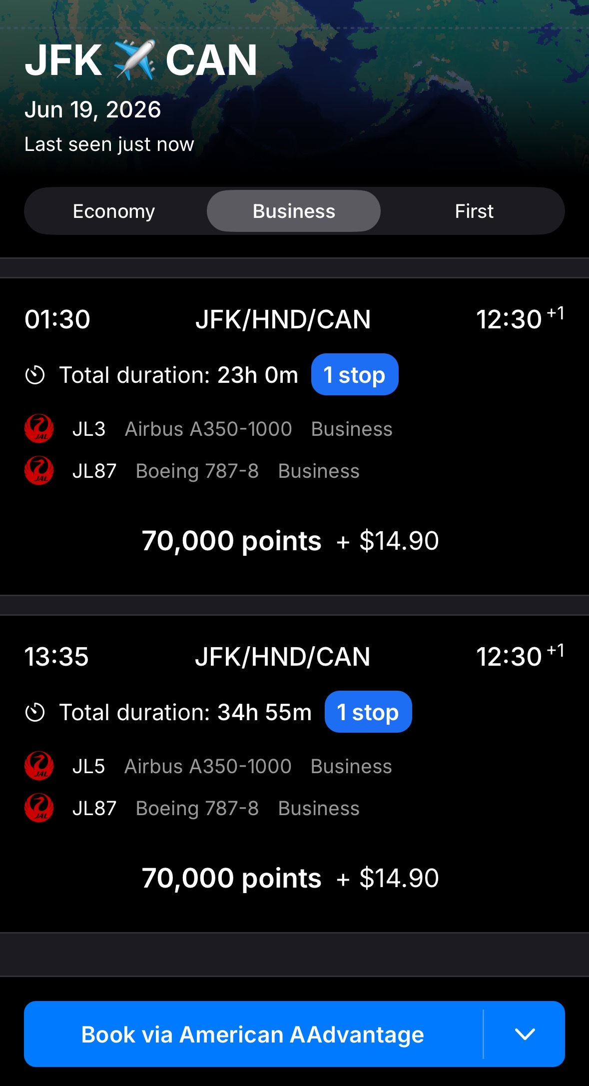 而且最近aa系统不知道改了还是怎么回事儿,美日方向经常只能定结婚票,还是非常难绷的那种