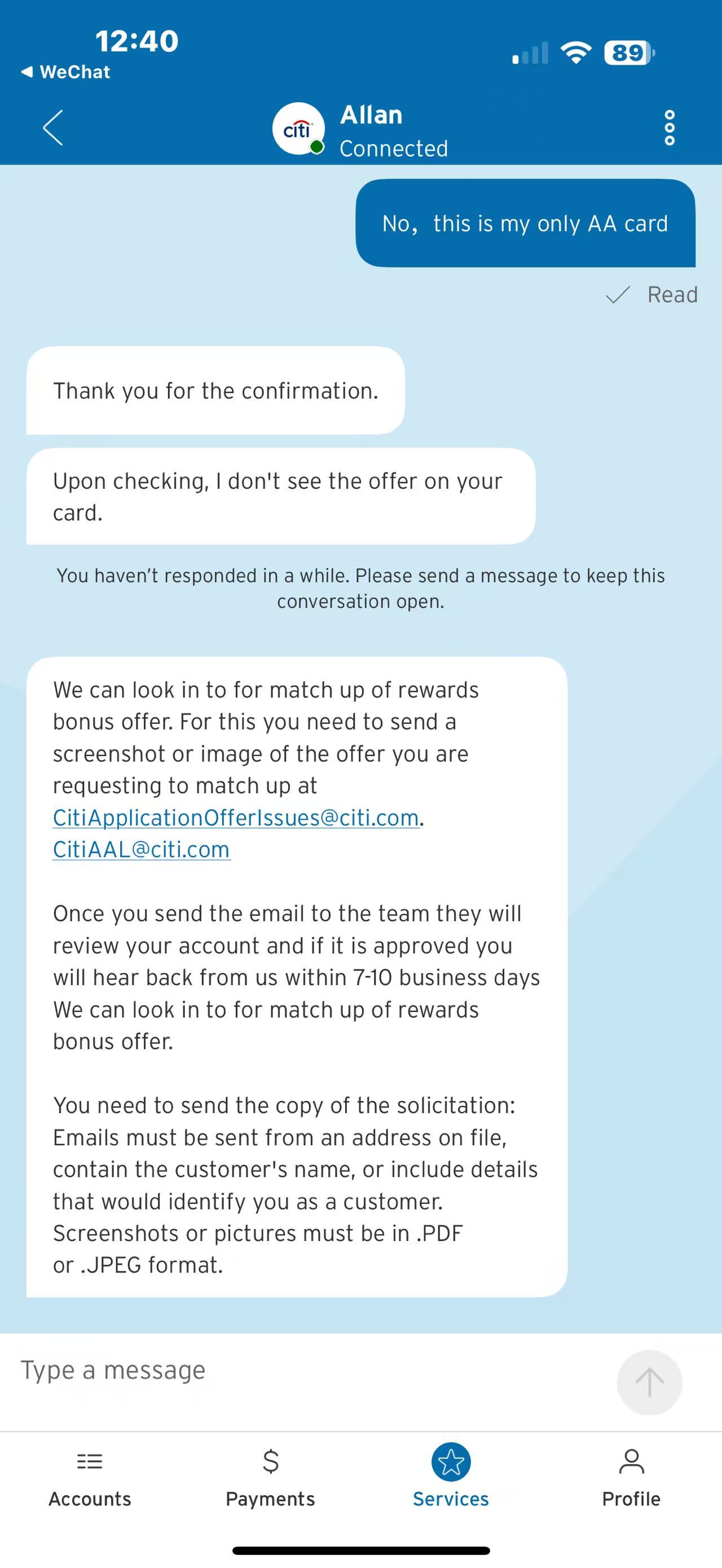 P2 10天前用如下链接开了第一张CITI AA Plat。之前一直没注意,今天才注意到没有SUB Tracker, 问了线上客服说没看到这张开卡有bonus offer,需要向提供的指定邮箱发当时开卡的bonus offer的截图(见如下图)。。。。请问有遇到这样情况的吗?