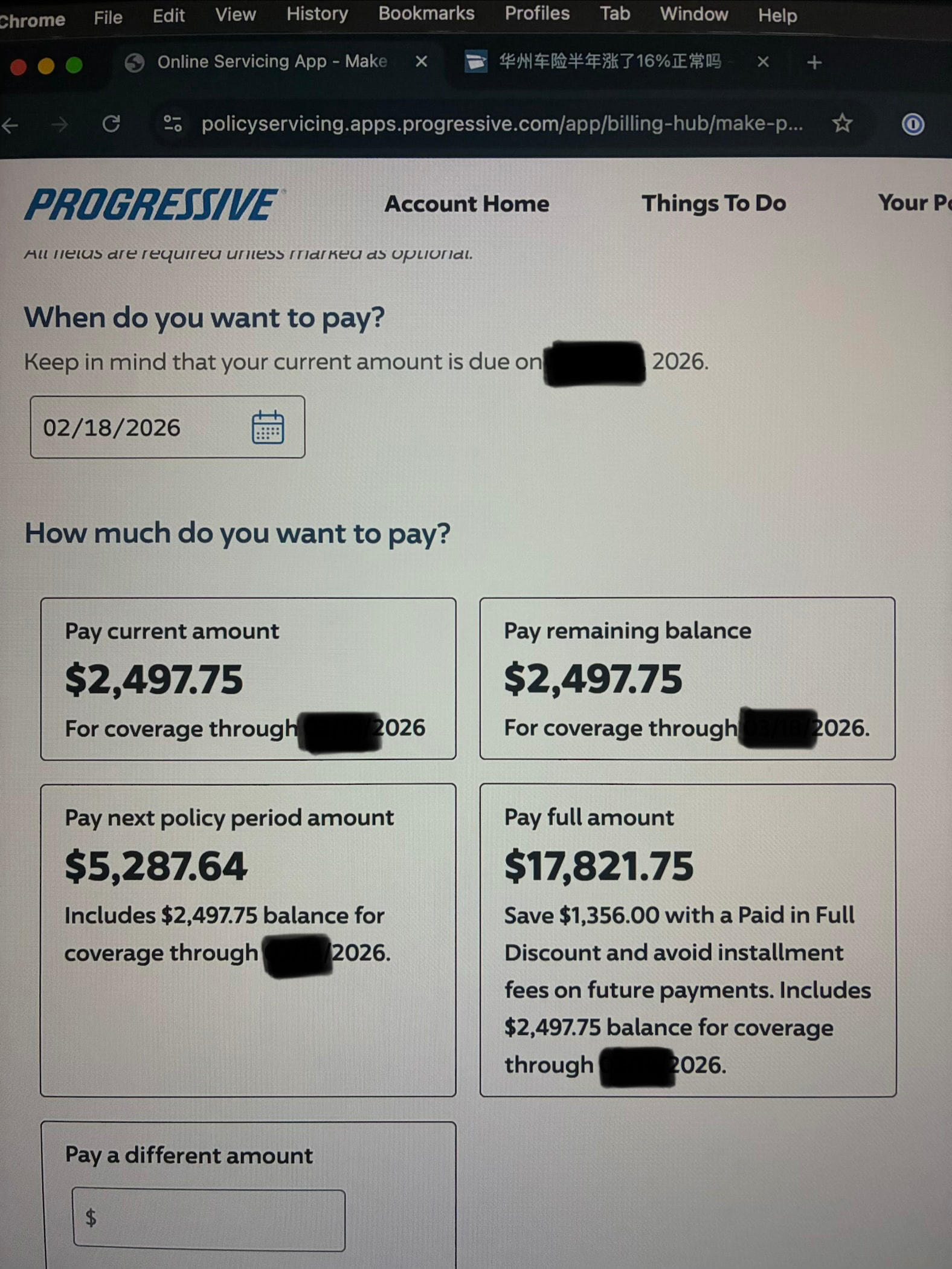 同progressive ,半年一续,一次都减个几十刀,(有10多刀,也有六七十刀)同保额其他家太贵了…