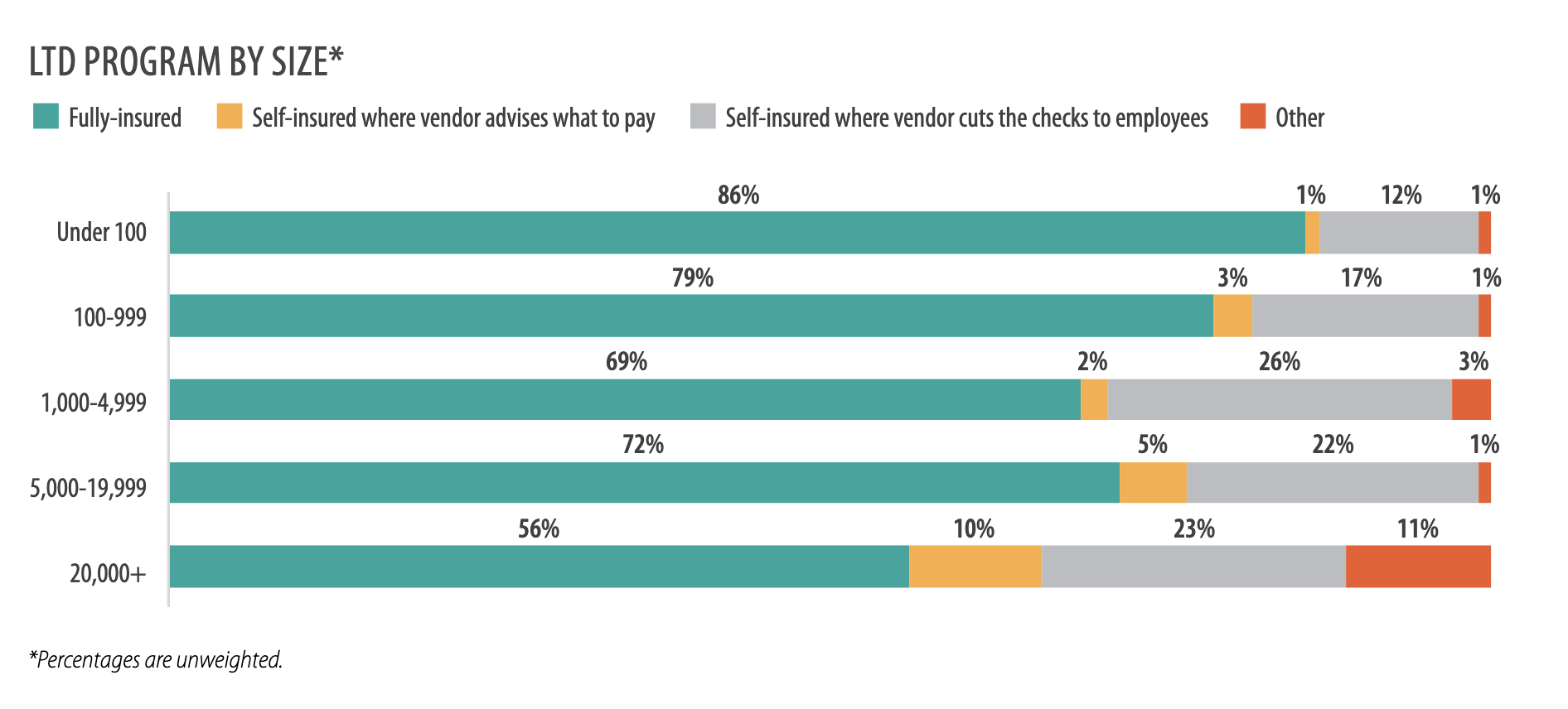 - Among employers with 5,000+ employees, 90% self-insure.