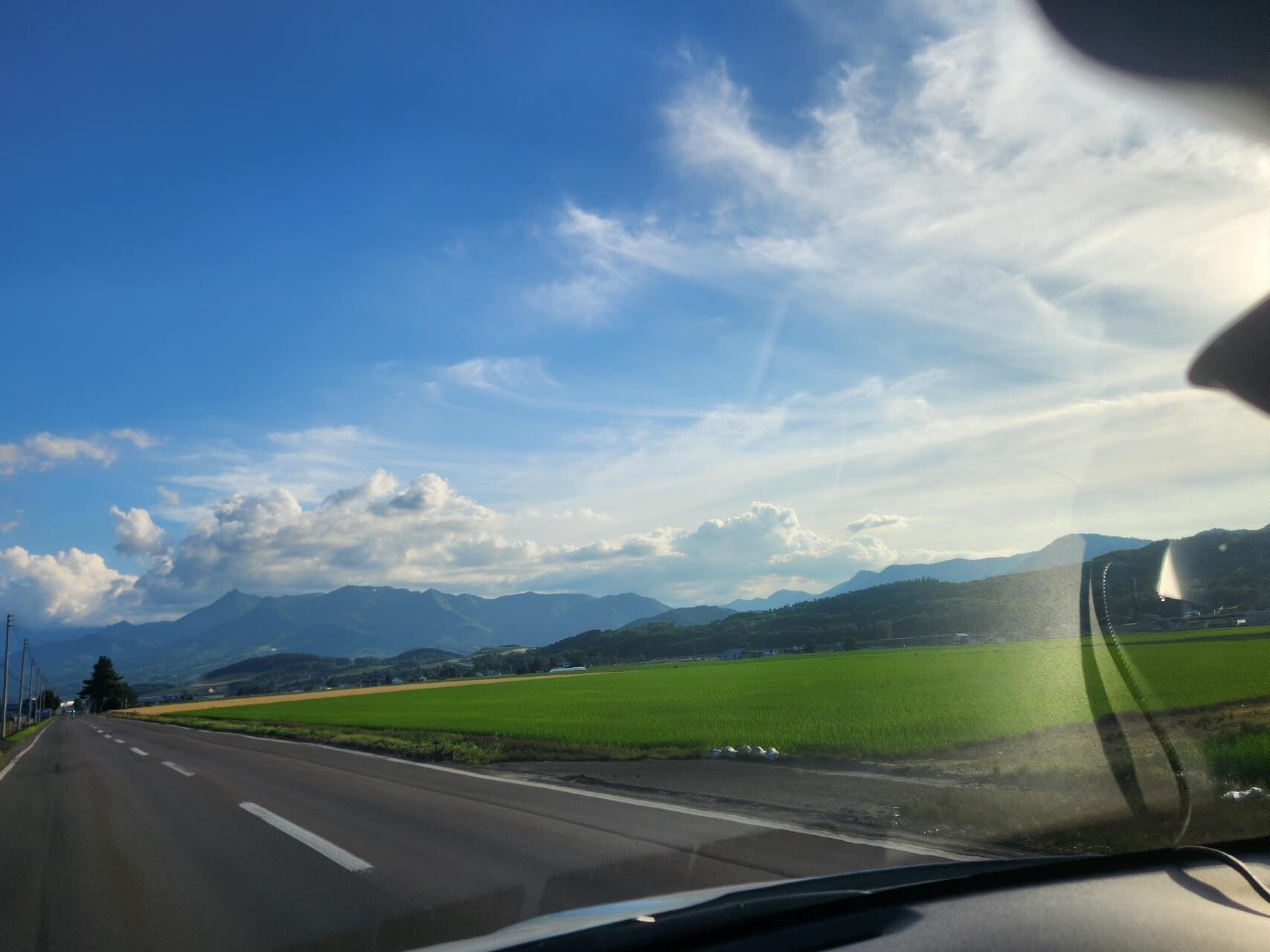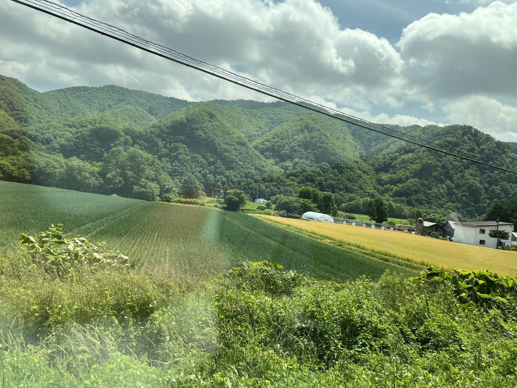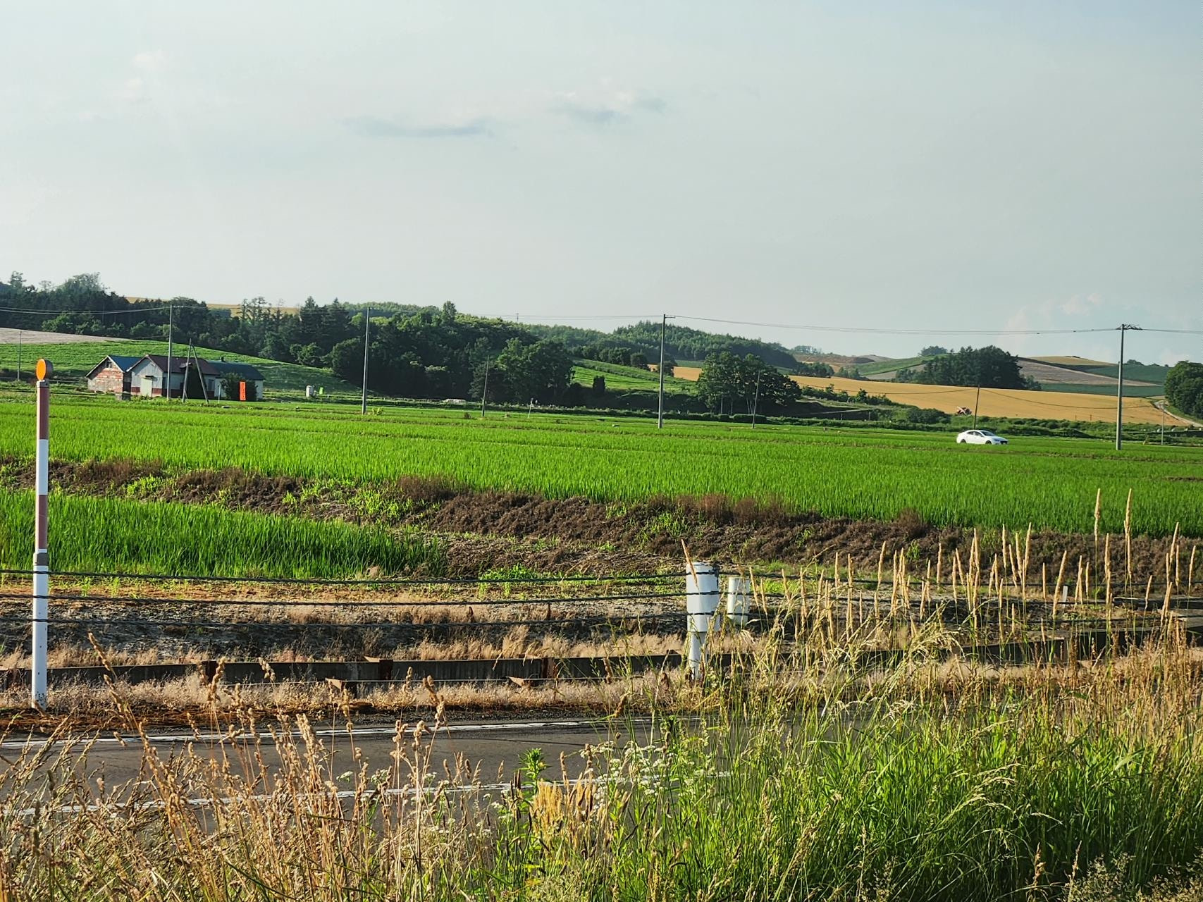 从山上下来,我们结束了今天的行程,驾车回民宿。路上经过了美瑛和富良野的农田。北海道的田园风光太美了。远处的丘陵连绵起伏,地平线和缓地从目光的尽头延伸到路边。驾车奔驰在乡间公路上,仿佛乘船游弋于彩色的海洋,经过温柔的波浪。绿油油的稻田、金灿灿的麦田、颜色各异的蔬菜田、和五彩滨纷的花田相互交织,鳞次栉比,构成了独特的“拼布之路”。落日余晖给山川田野镀上了一层温暖的金色,像一幅印象派的画,让我想起梵高的《麦田》和莫奈的《干草堆》。
