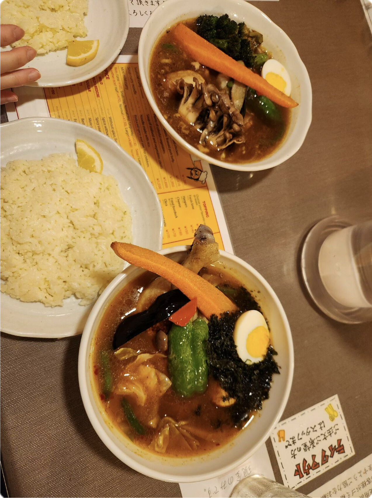 晚餐我们品尝了札幌的特色美食——汤咖哩。Medicine Man据说是Tabelog上全日本排名第一的汤咖哩店。当天店里人不多,看起来都是当地居民,非常chill,丝毫没有网红店的气质。