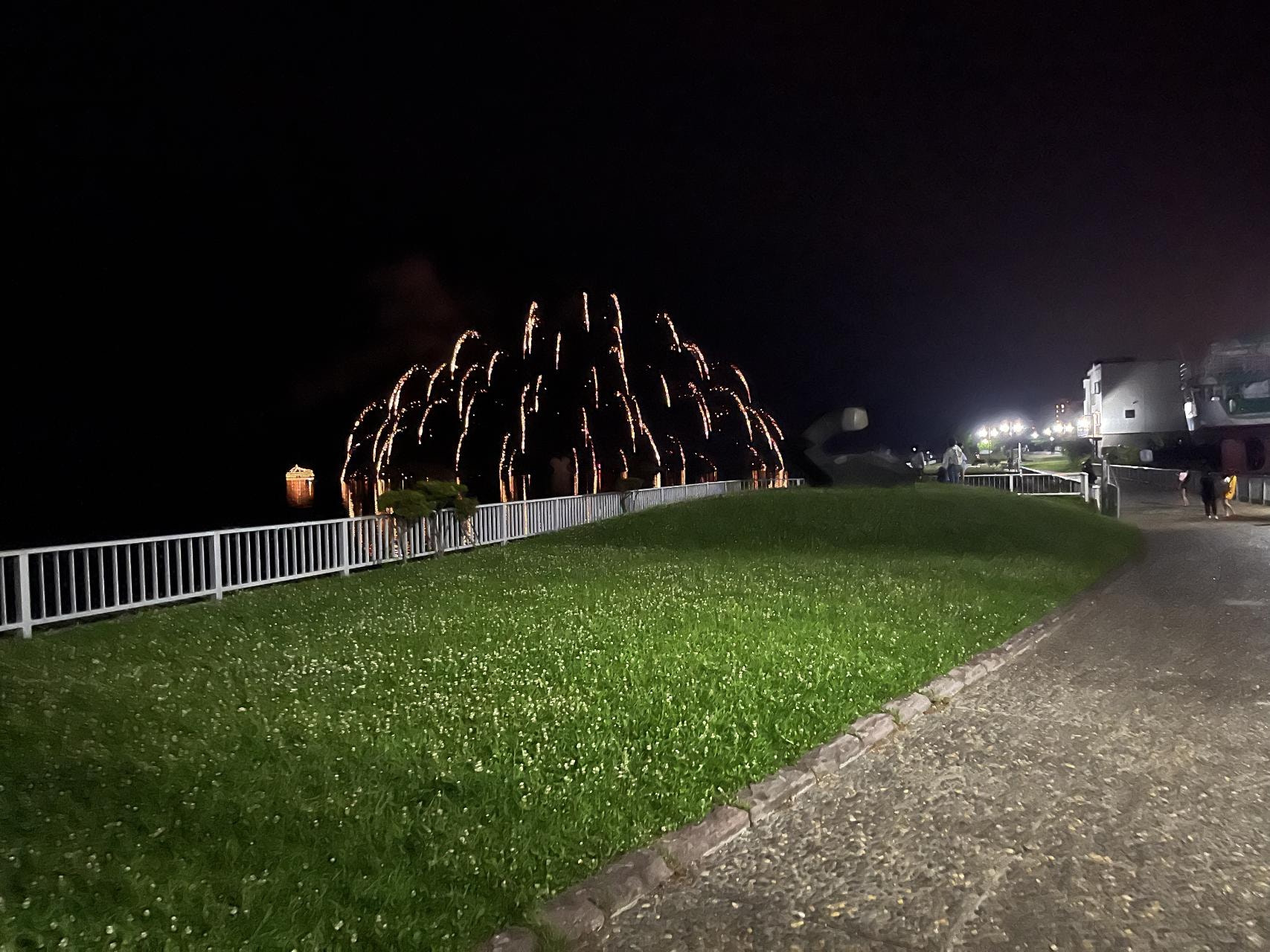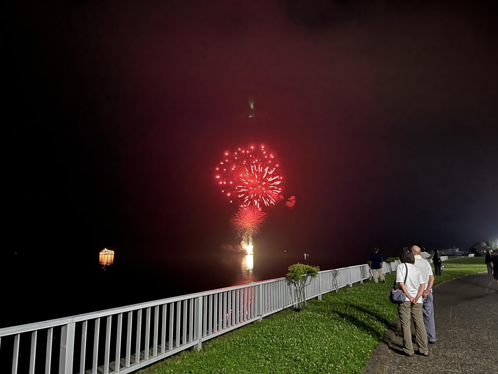 晚饭之后我们到洞爷湖边看烟花秀。烟花是附近一个高级酒店放的,可以乘坐专门的花火游轮近距离观看。我们以为公园会有很多人看,所以提早到达,希望找个好位置。结果宽阔的湖滨空无一人,直到开始才有稀稀拉拉的人出现。