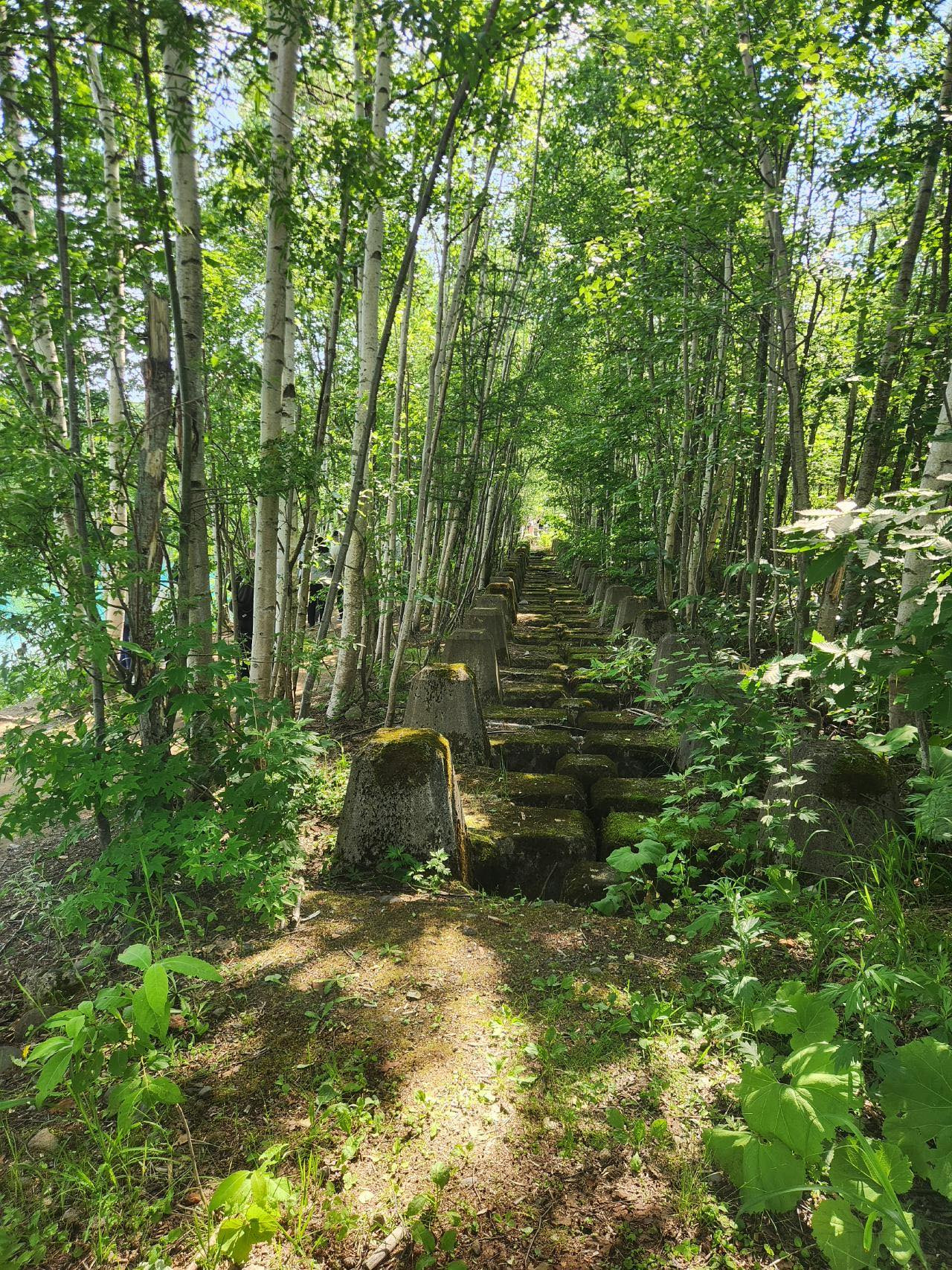 通道里没有通风装置,大部分玻璃门窗还关着,在夏日阳光的照射下仿佛一个闷热的大棚。怀孕5个多月的我纠结了一下,决定爬上这286级台阶,去看看山顶的样子。通道里不仅有闷热的空气,还有大大小小的虫子,楼梯边上甚至有蛇蜕的皮。怪不得我们是唯一往上爬的游客。我最怕蛇和虫子,只敢走在楼梯中间,目不斜视。