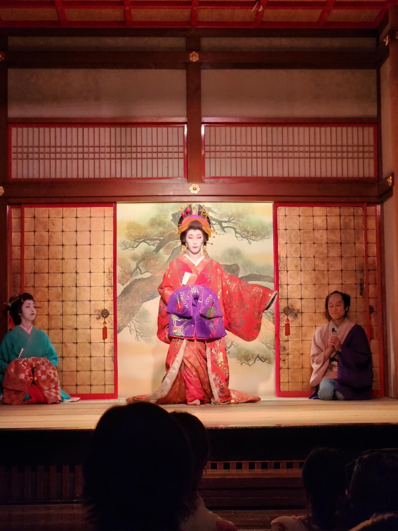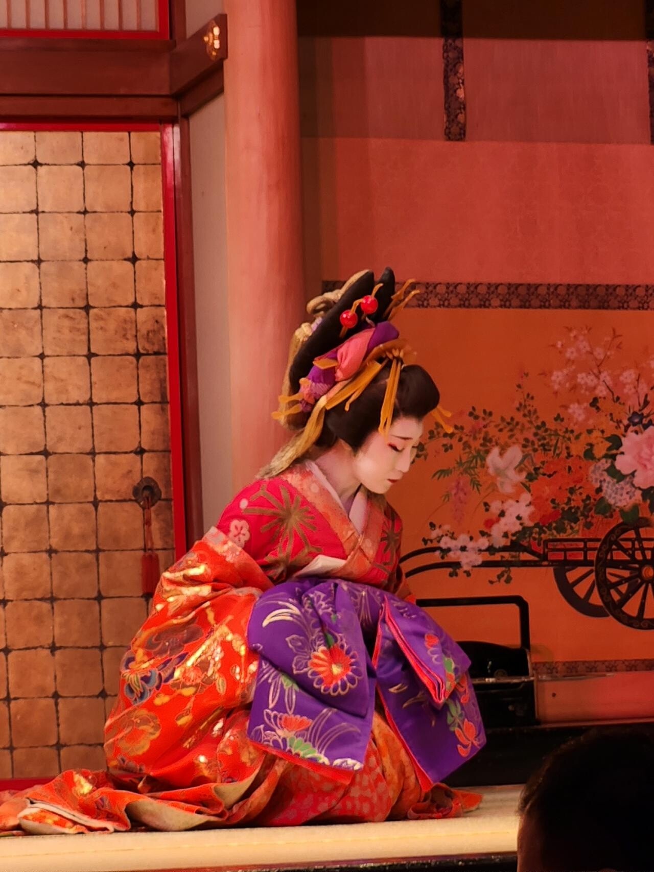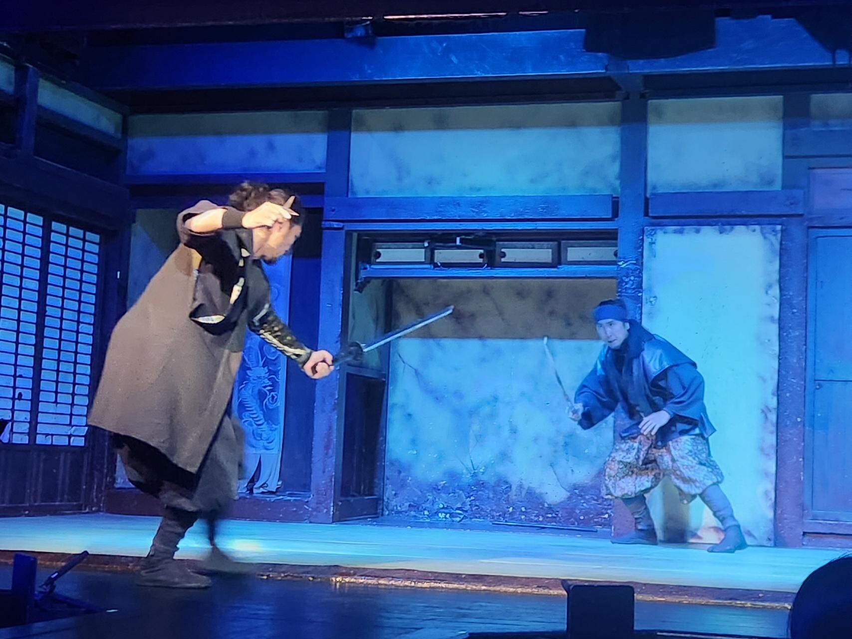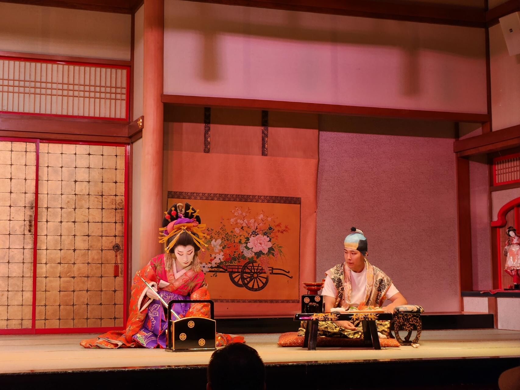 我们参观了学校、忍者馆、恐怖屋等等,还看了两场小剧场表演。忍者秀讲述了伊达政宗家的忍者如何联手一名神秘忍者,共同对抗丰臣秀吉家的忍者的故事,是一部展现忍者打斗的动作片。花魁秀是一场和观众互动的喜剧表演,展现了花魁招待日本将军时的游戏和表演。有搞笑的互动,也有花魁优雅的歌舞。
