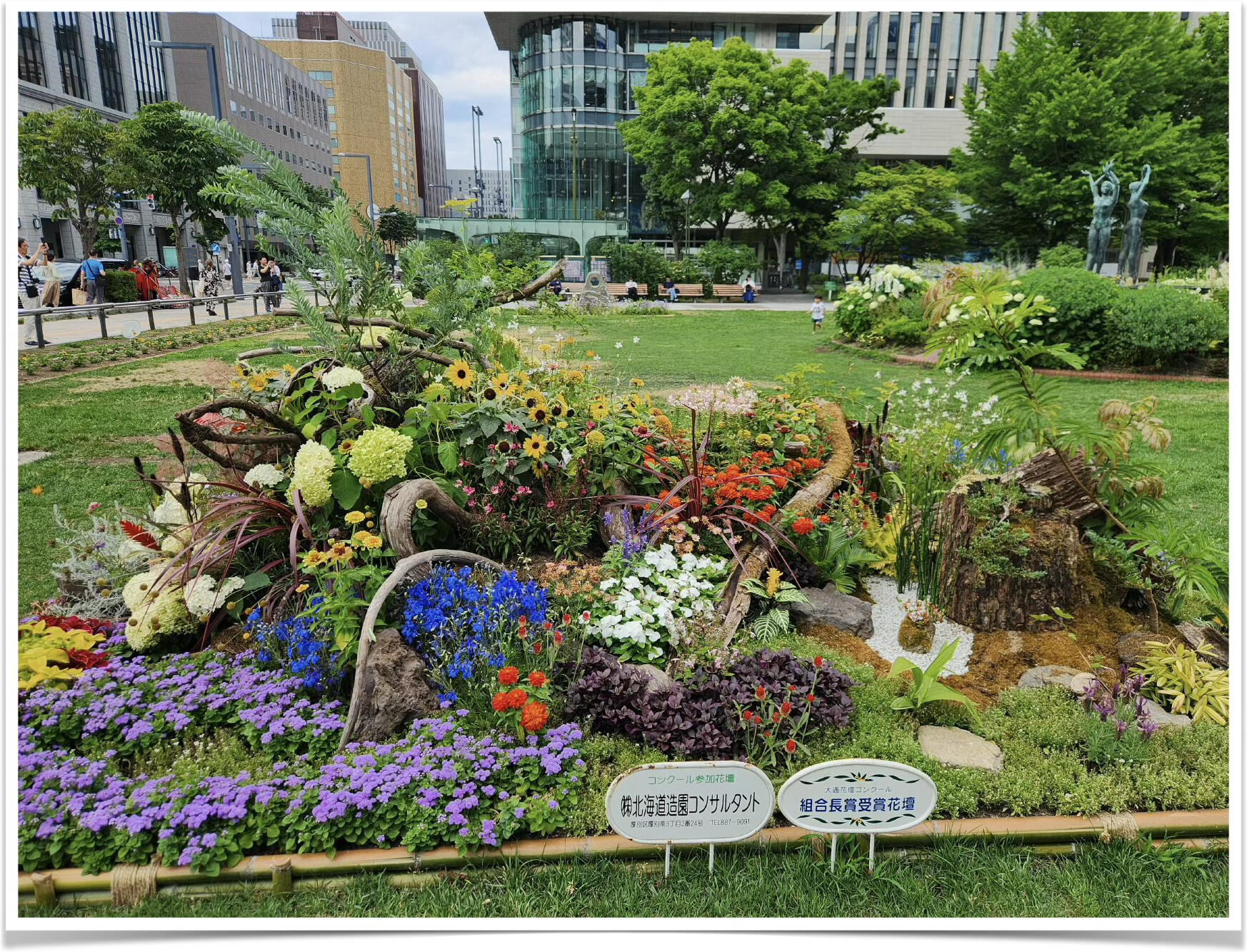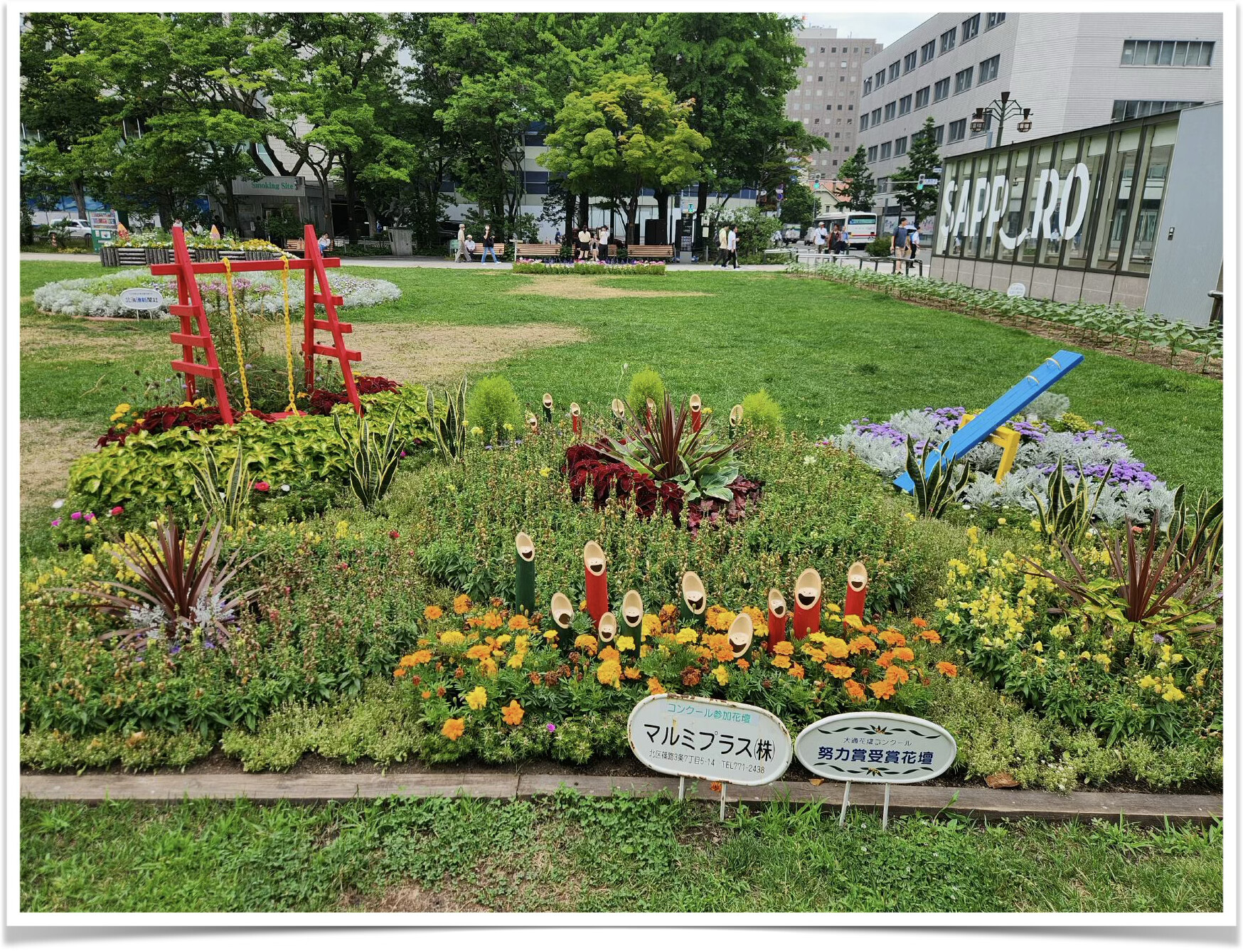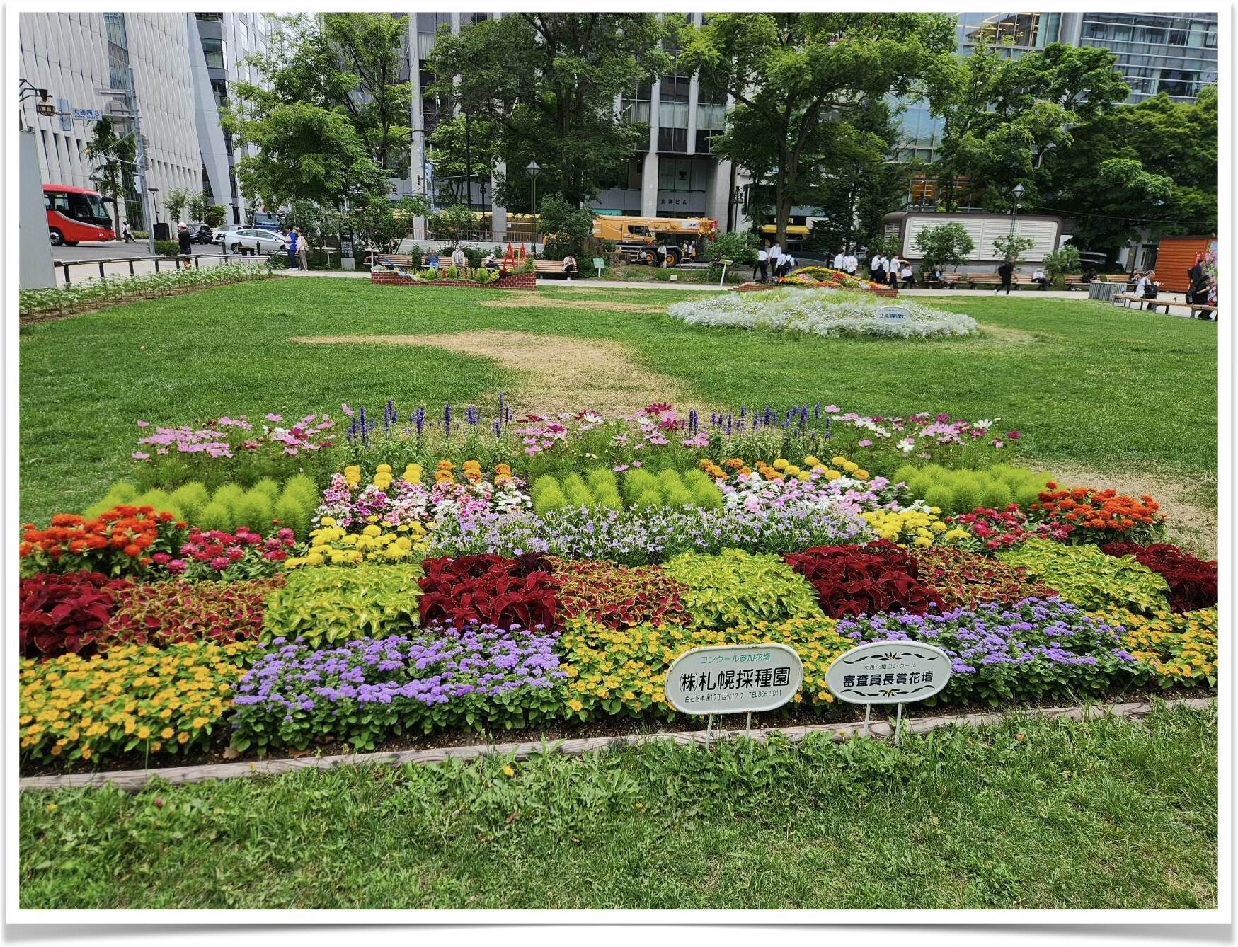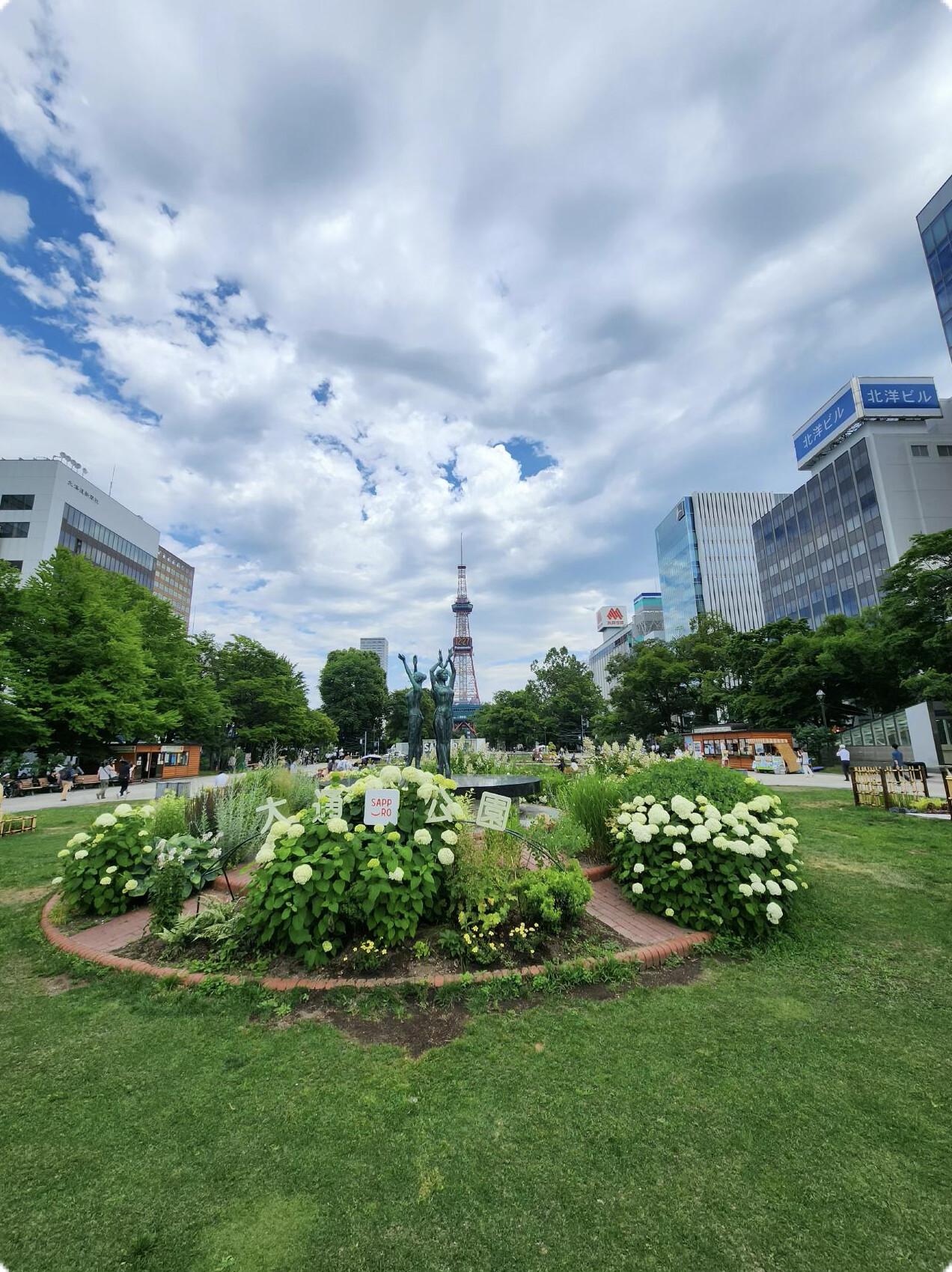 路上经过了札幌大通公园(Odori Park)。公园坐落在市中心,狭长的形状蔓延多个街区。从电视塔一直延伸到北海道廳舊本廳舍(原省政府大楼)。