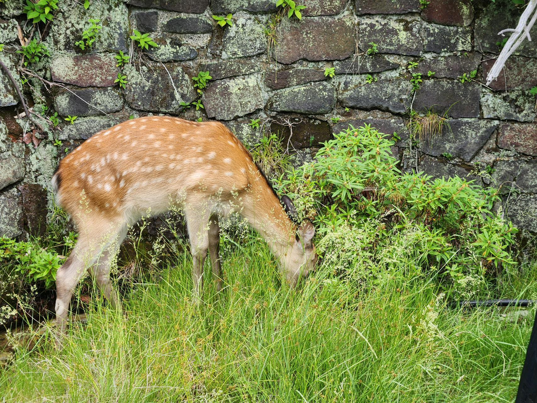 在大汤沼等车的时候,我们偶遇一只梅花鹿。