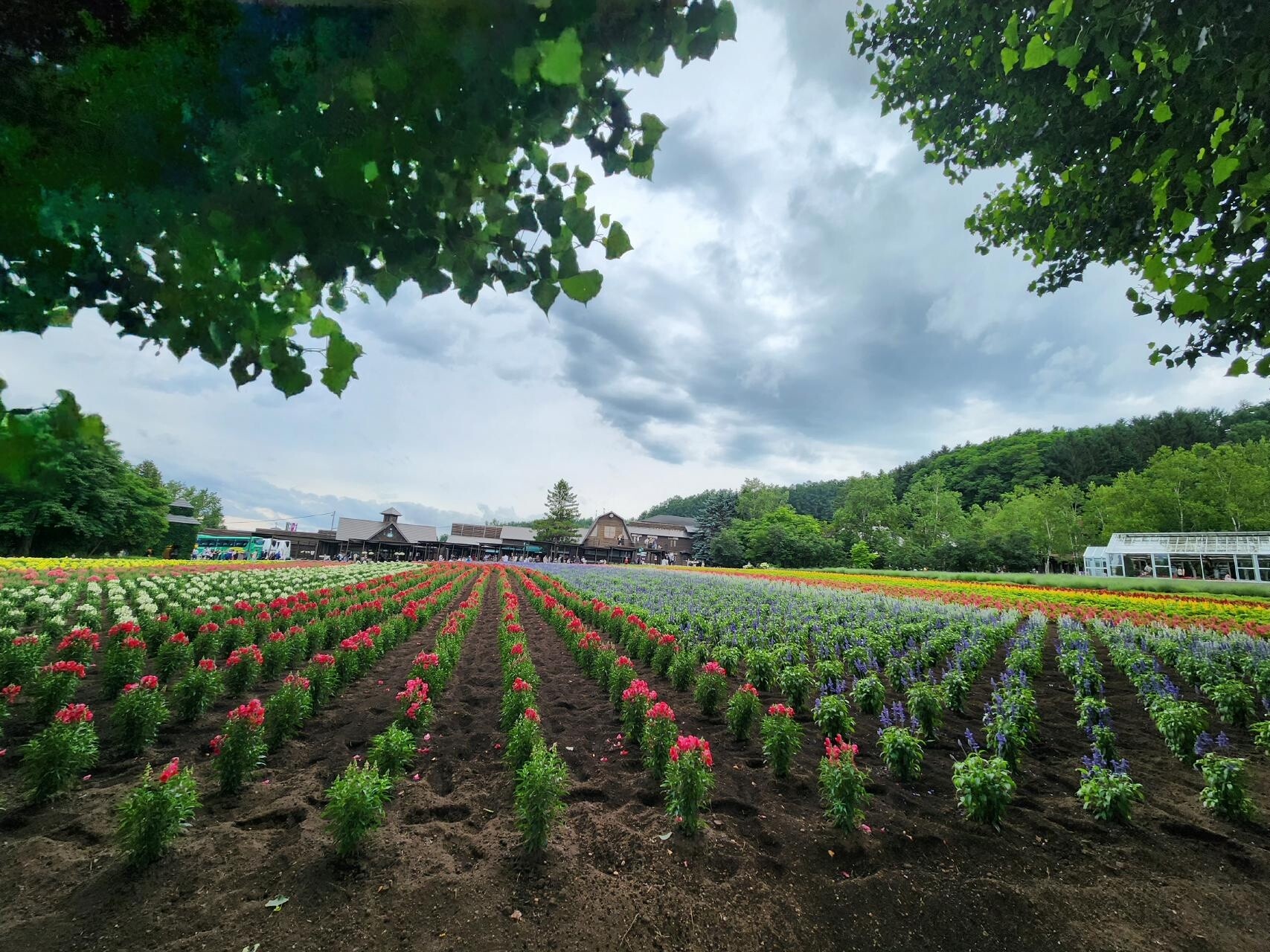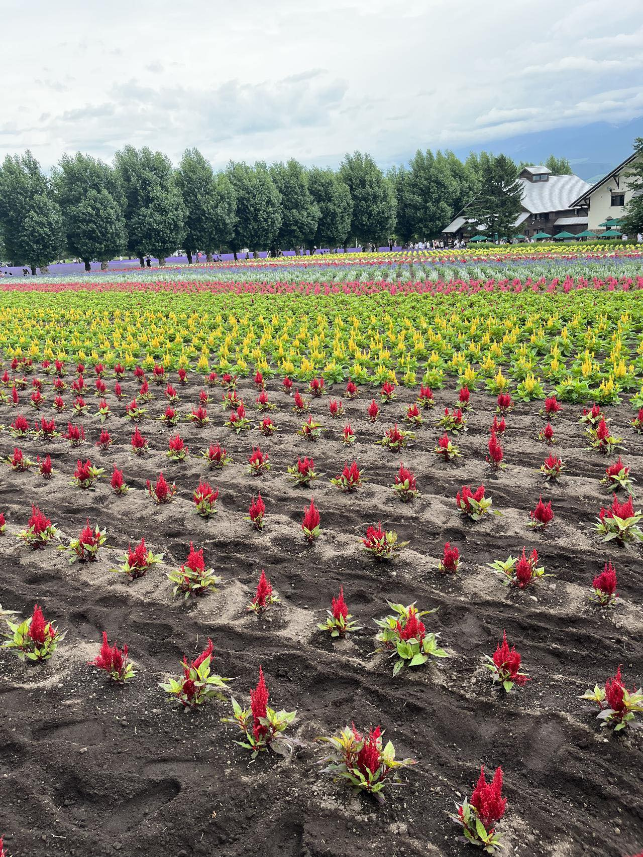 午餐后我们来到了富田农场(Farm Tomita)。这里有大片的薰衣草花田,还有五彩缤纷的各种花的花田。花朵都像阅兵似的整齐排列,漫步其间仿佛置身童话世界。