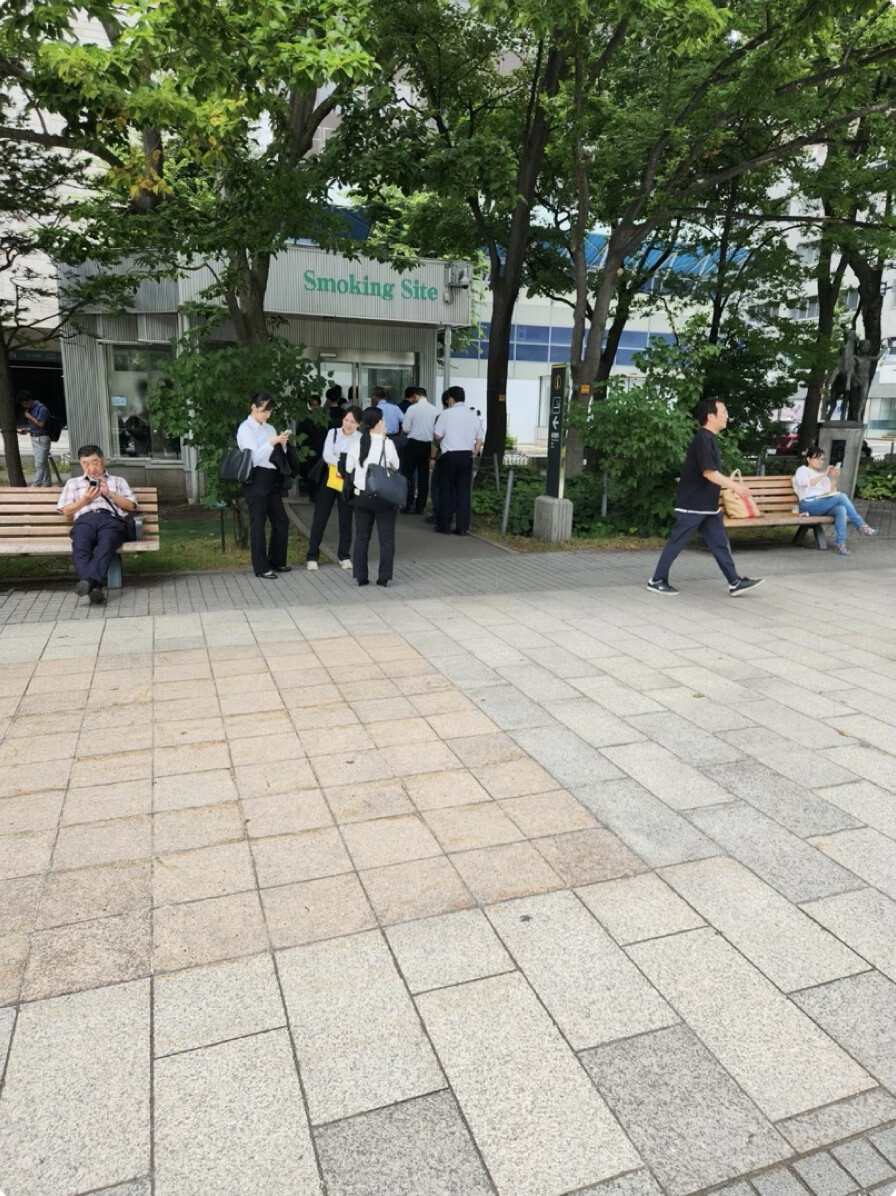 我们经过的时间是一个工作日的中午,周围工作的白领和不多的游人在公园里吃饭、抽烟、休息。