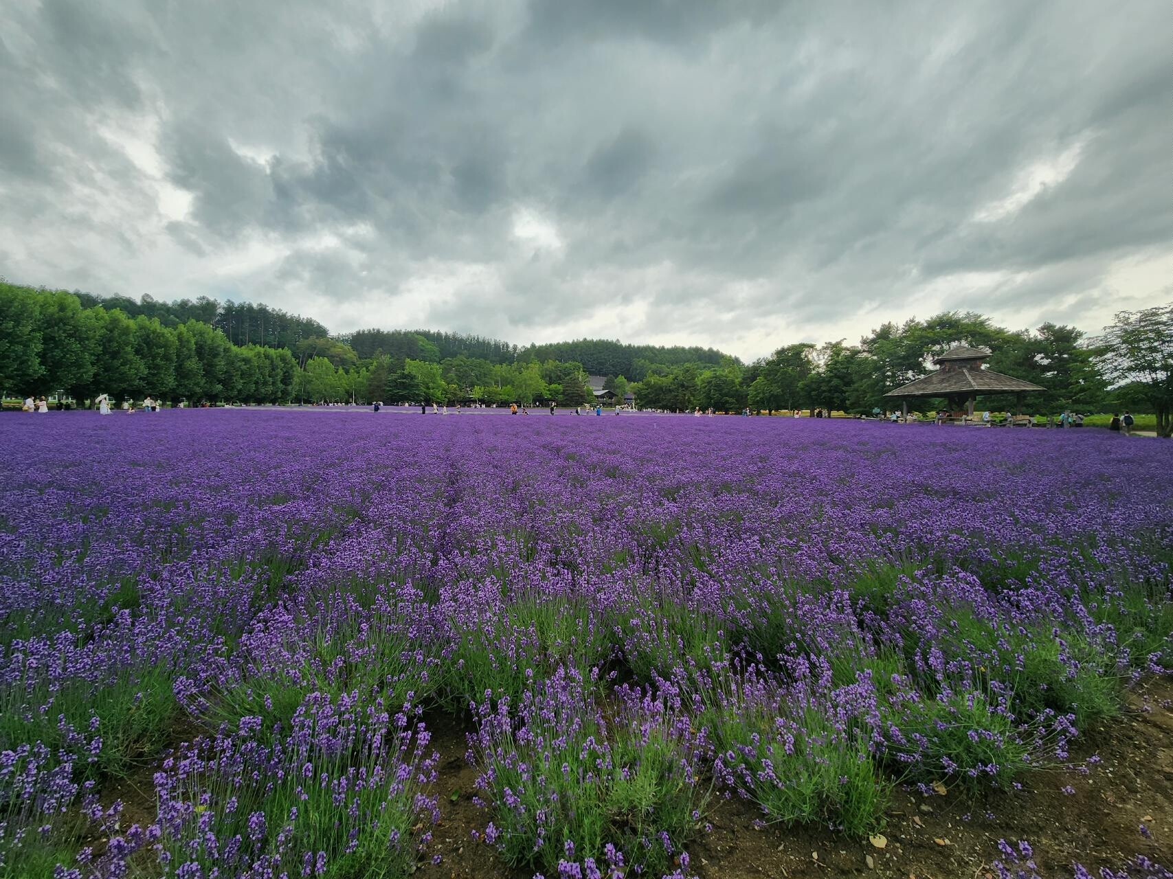 除了花,富田农场还出产其他农产品。最受欢迎的是哈密瓜。我们品尝了新鲜的瓜和花密瓜味的冰激凌。瓜很甜,但也很贵。农厂还有各种花的产品,精油、香水、香皂、护肤品等等。薰衣草味冰激凌和咖啡也是热销产品。但小红书的姐妹说吃起来像喝洗衣液,所以我们就没有尝试。这些产品支撑了富田农场的运营,以至于参观农场本身是完全免费的。农场深受韩国旅行团的喜爱,一辆辆韩国旅行大巴源源不断地把游客送来。