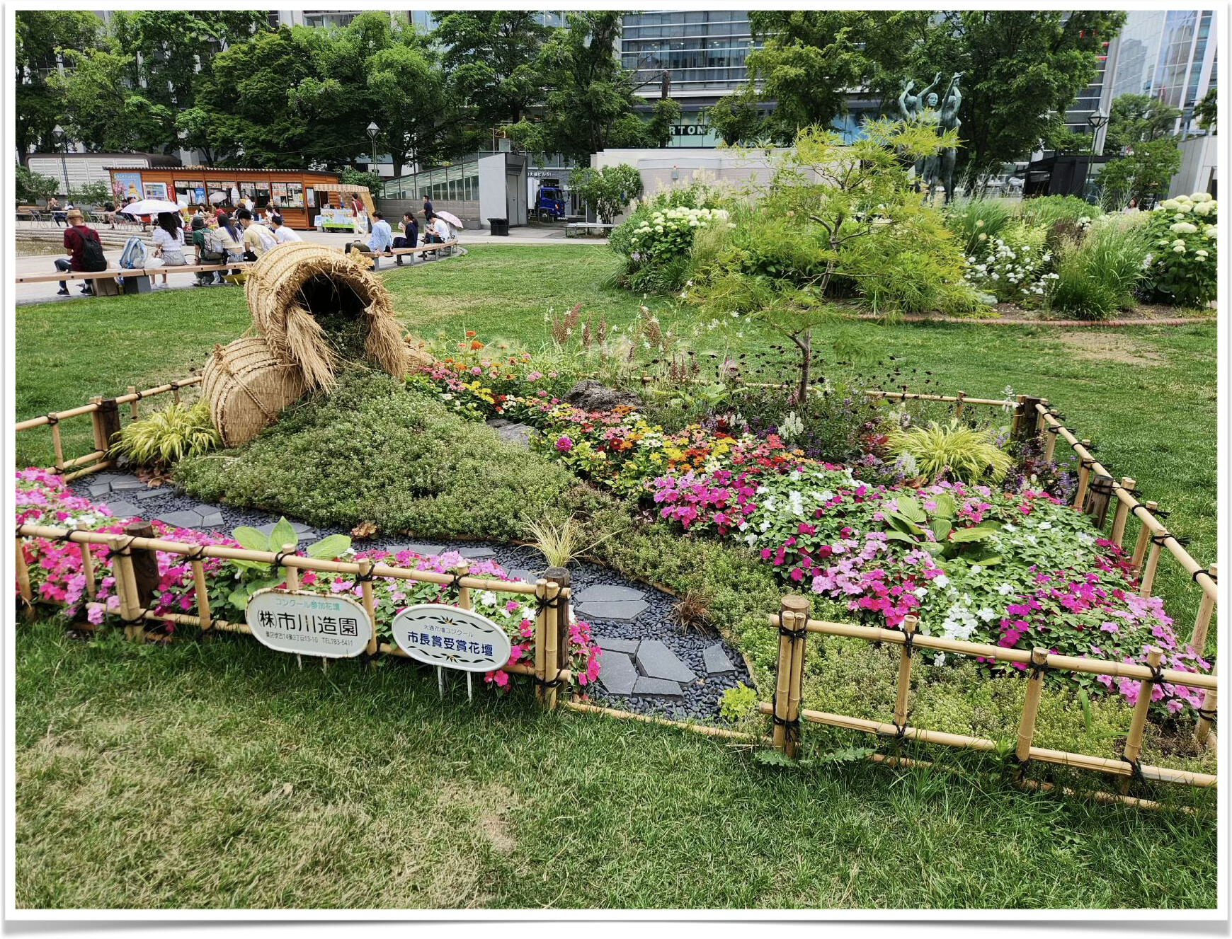 公园的草坪上有园艺作品展览/比赛,展出的各种小园圃风格多样,各具特色,十分可爱。