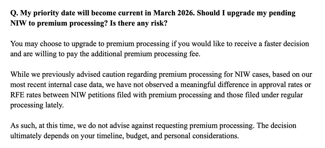Visa FAQ下面的Premium Processing Service Expansion of EB2-NIW, I-765, I-539已经改了