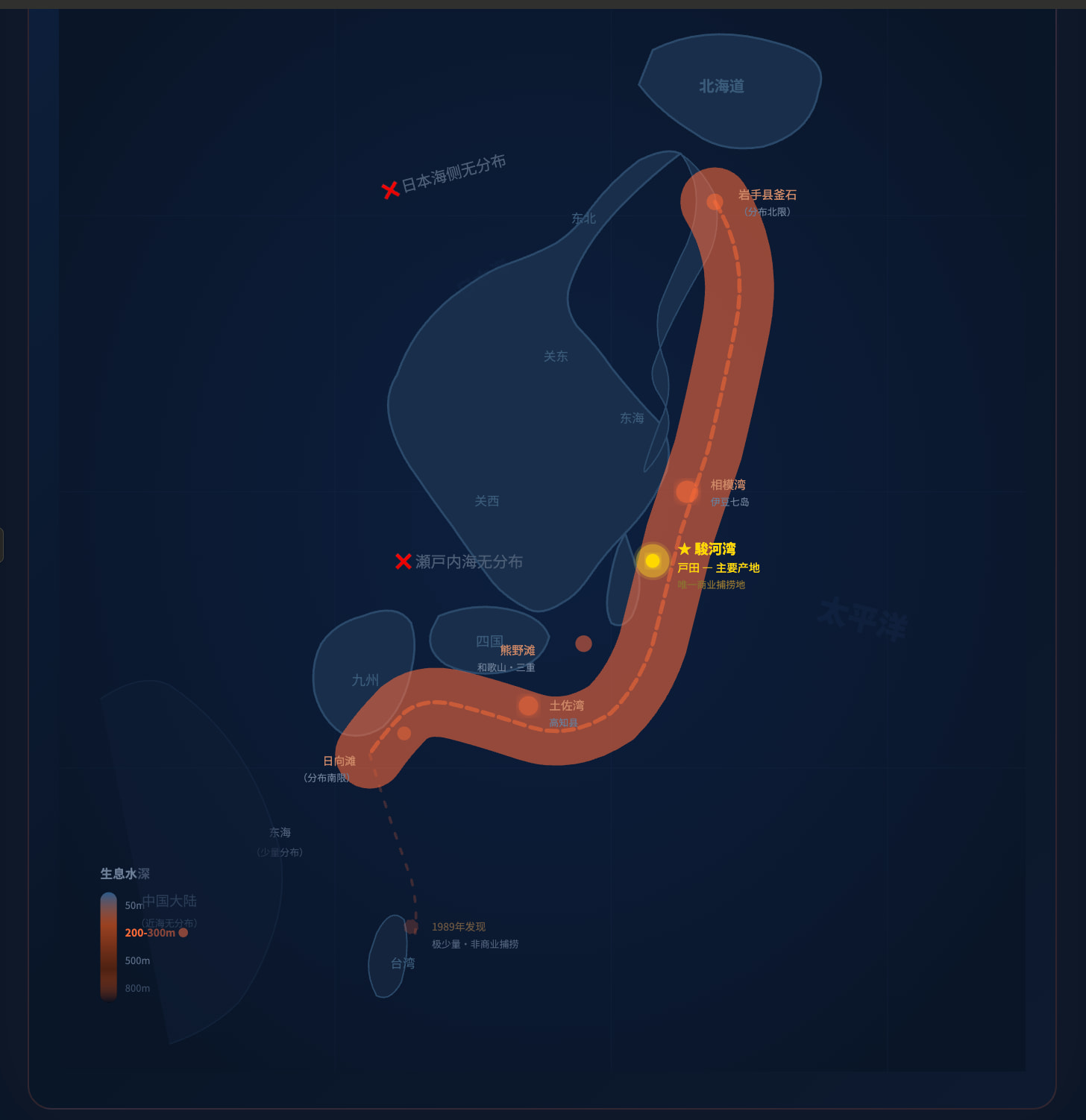 分部的话应该是分布于日本太平洋一侧,让ai画了一个图
