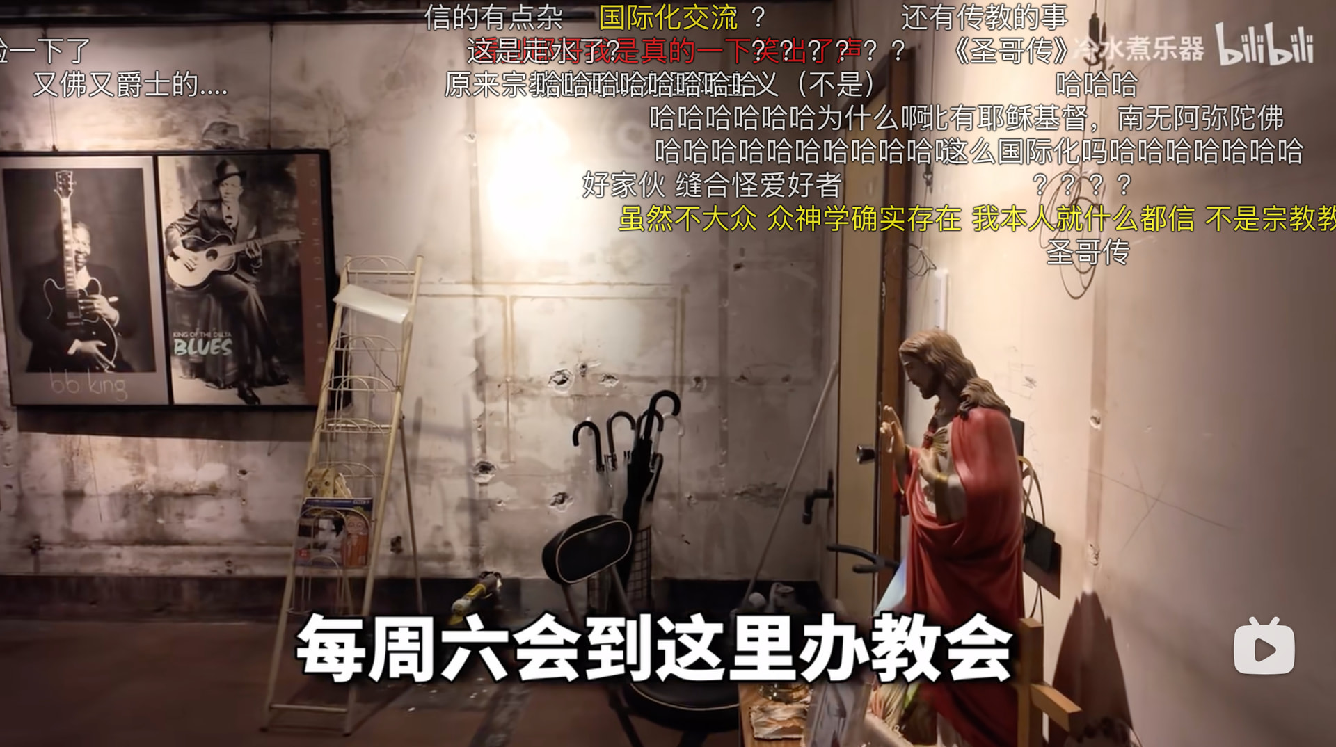 视频中博主参观了酒吧正在扩建装修的场地。老板表示,这里未来不仅是Live空间,也是传教的地方。最让人意外的是,在这个佛教色彩浓厚的空间里,竟然还端正地放着一尊耶稣像。老板解释说,无论是净土真宗还是其他宗派,甚至不同宗教,在这里都是被欢迎的——这种“众生平等”的包容度确实让人心生敬意。