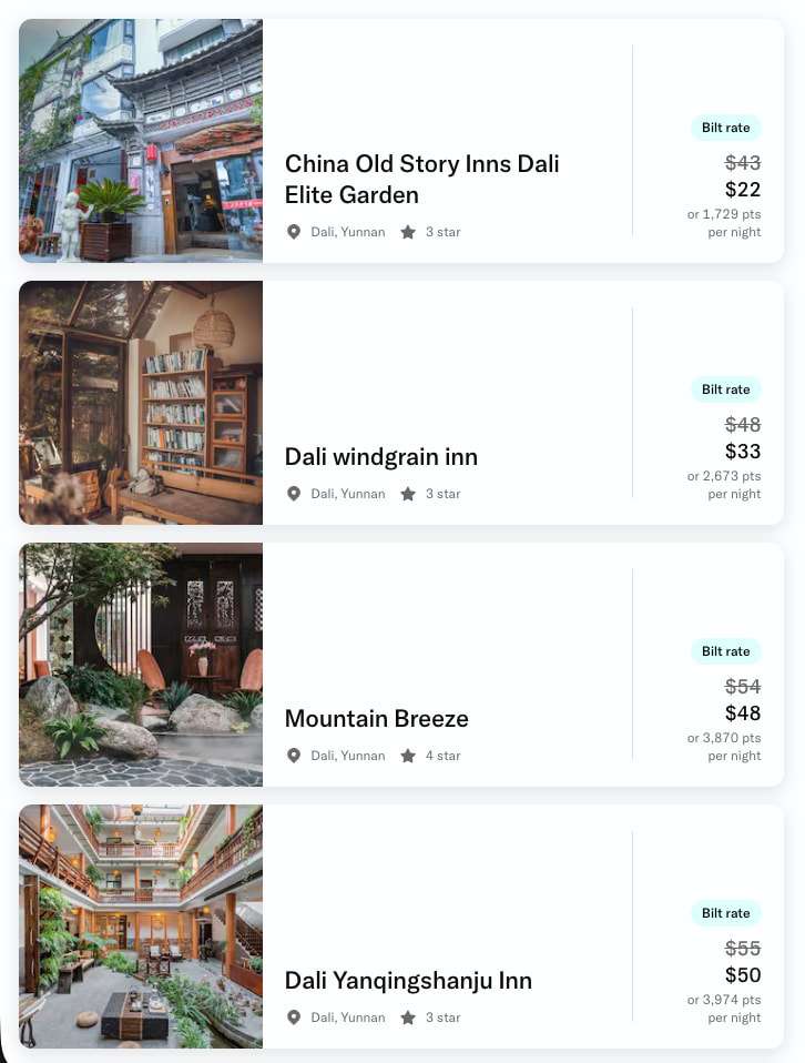 当然bilt的数字游戏都是看上去复杂美好,还得看实际情况。随便拿大理古城边搜,因为这个地方名宿多、连锁也多: