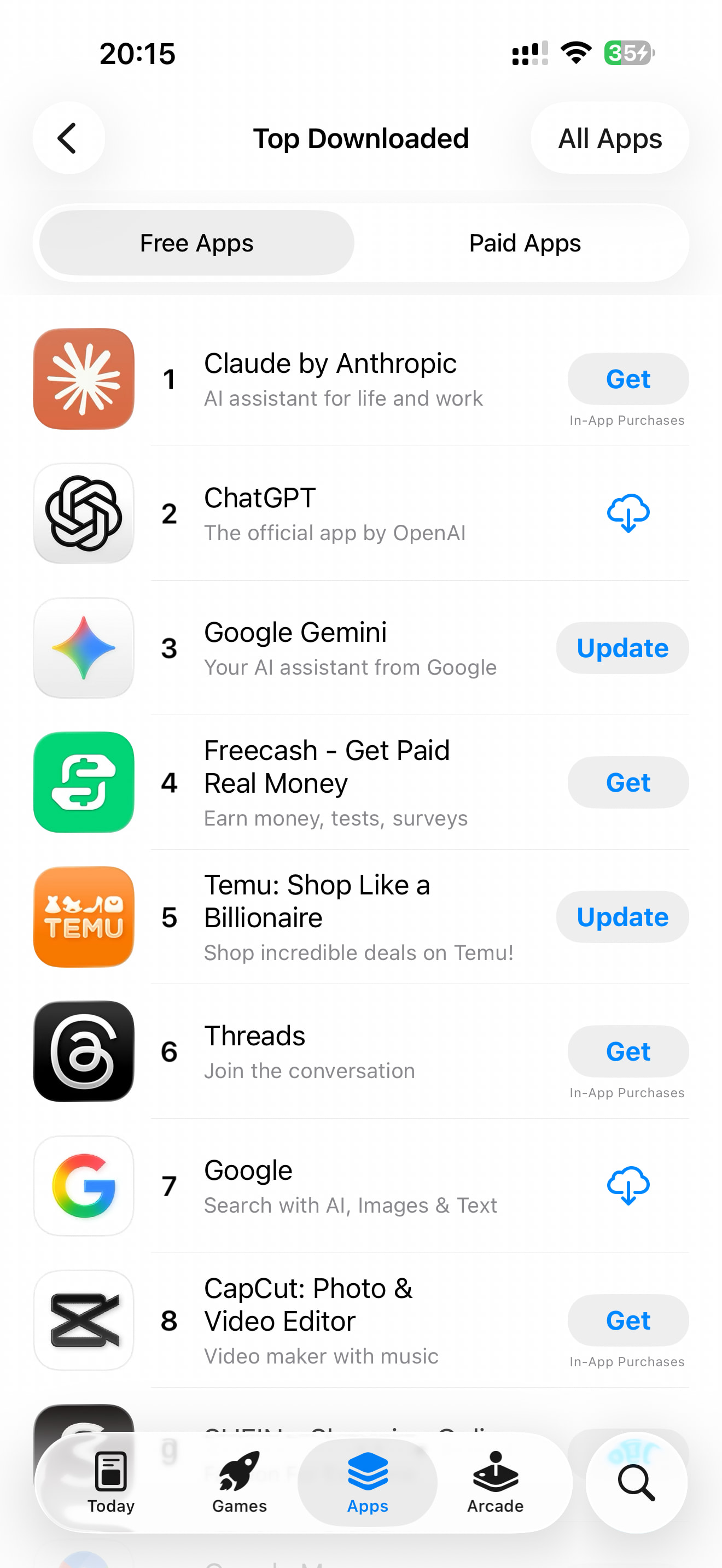 你打开IOS Apple Store看一眼,Claude的下载量登顶好几天了。之前长期在百名开外