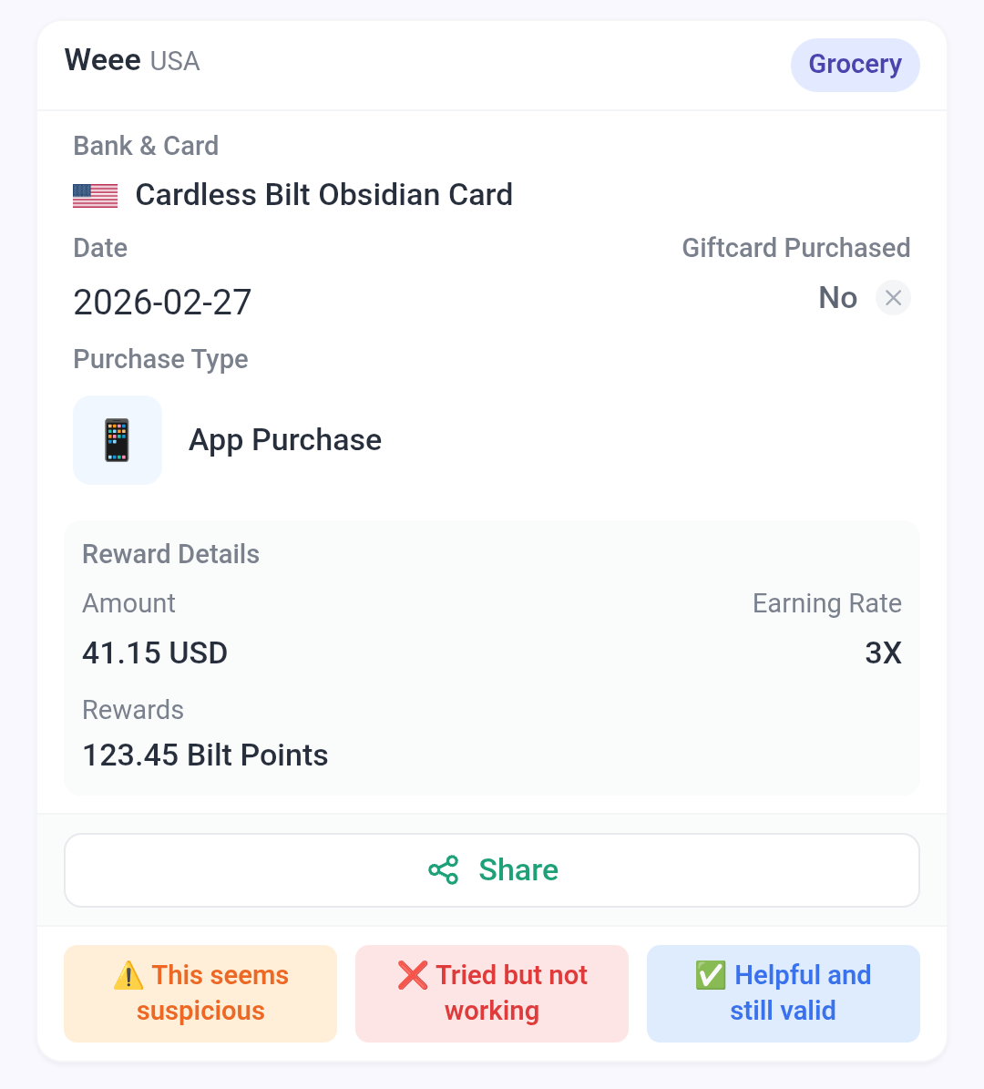 我自己做的一个 收集各种dp的网站 - [SwipeSmart] 收集和查询 主流信用卡返现返点和类别的dp (Update:20260218:现在可以直接在app里提问dp了 比如xxx在哪张卡上算什么类别 rewards是多少 / 支持chase csv直接一键上传) - 玩卡 - 美卡论坛, 欢迎提供反馈和你的dp!