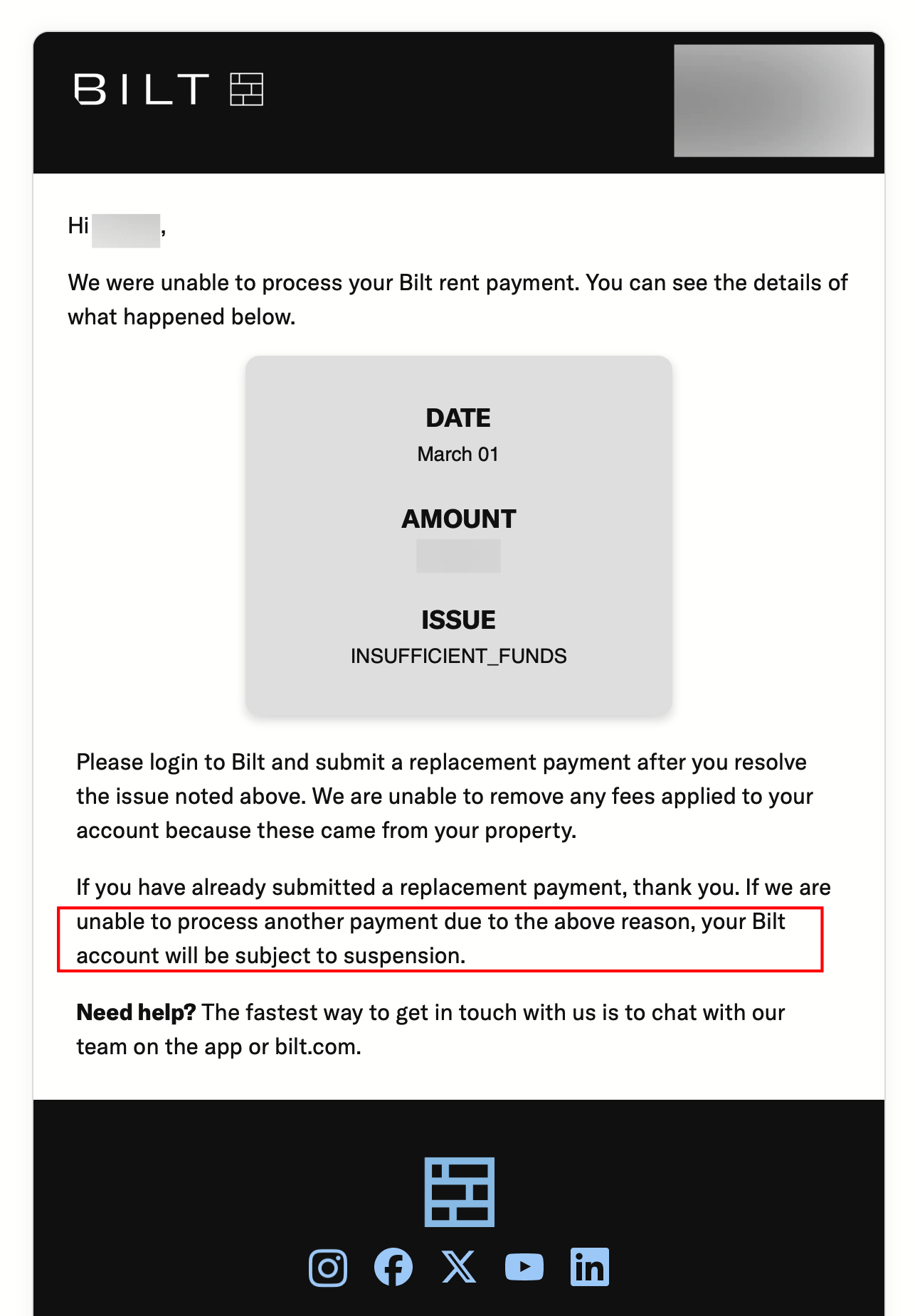 今天收到Bilt邮件,rent payment失败,需要重新提交payment,不会retry。下次再跳票就封号了 ![]()