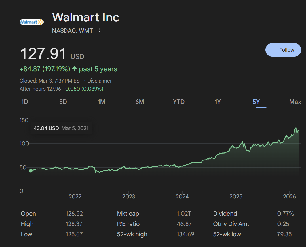 不过话说回来, Costco Walmart 的PE也太高了