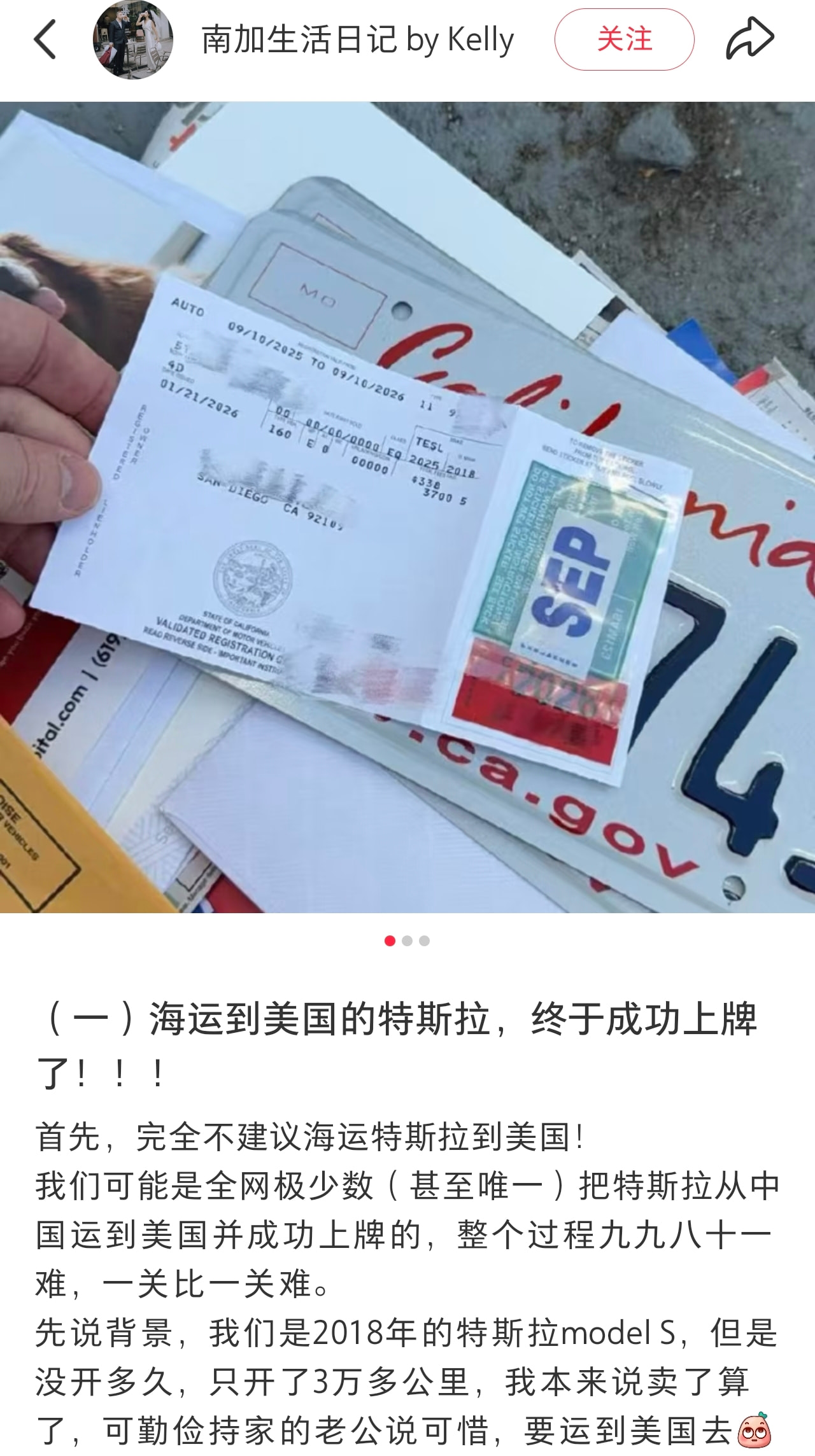 tltr:把原产于美国出口到中国的tesla modelS再运回美国成功上牌了 ![]()