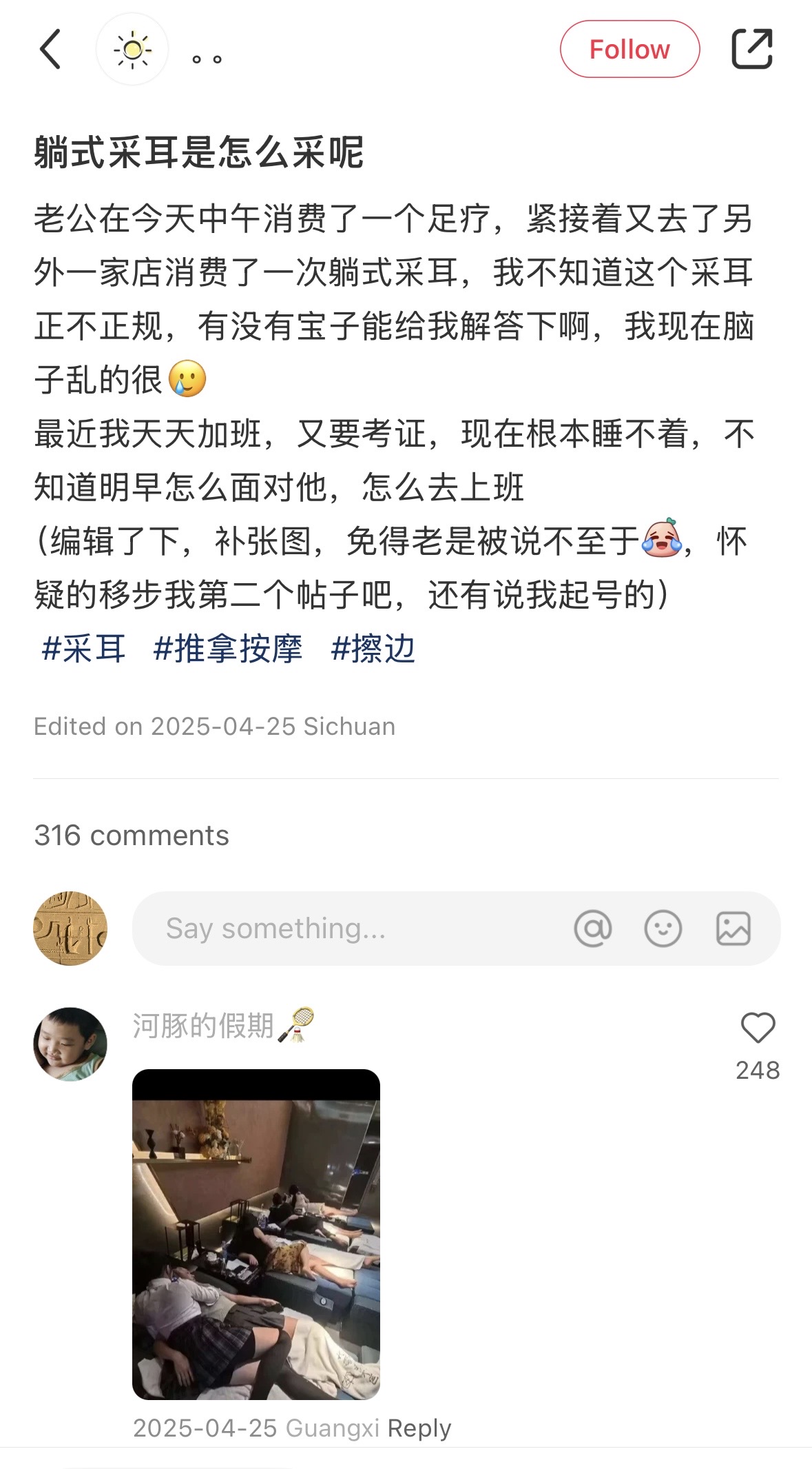 我以为是踩背+采耳 结果技师进来就感觉不对了 穿了个裙子