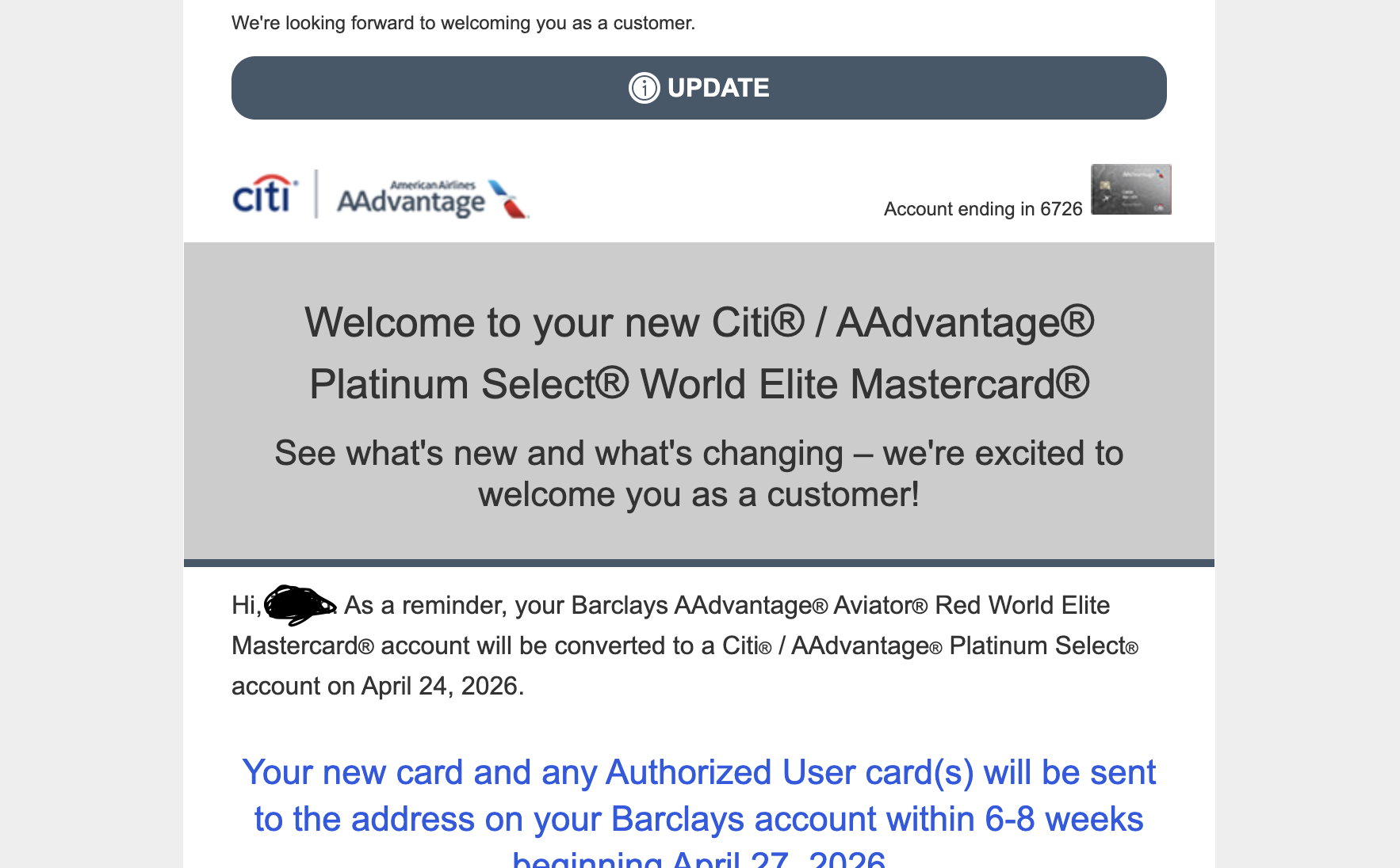 红飞上周关卡,今天收到这个,citi会渣it直接给我开了张卡嘛?