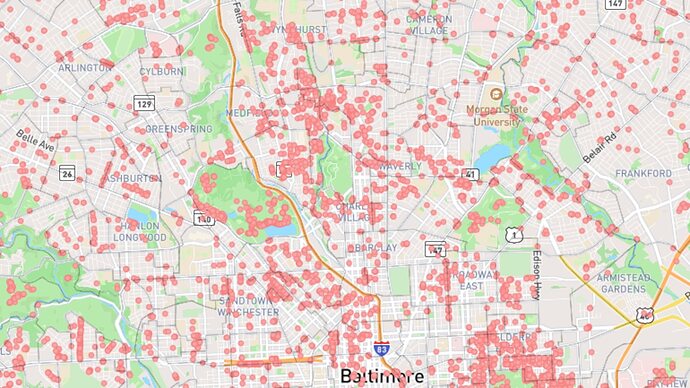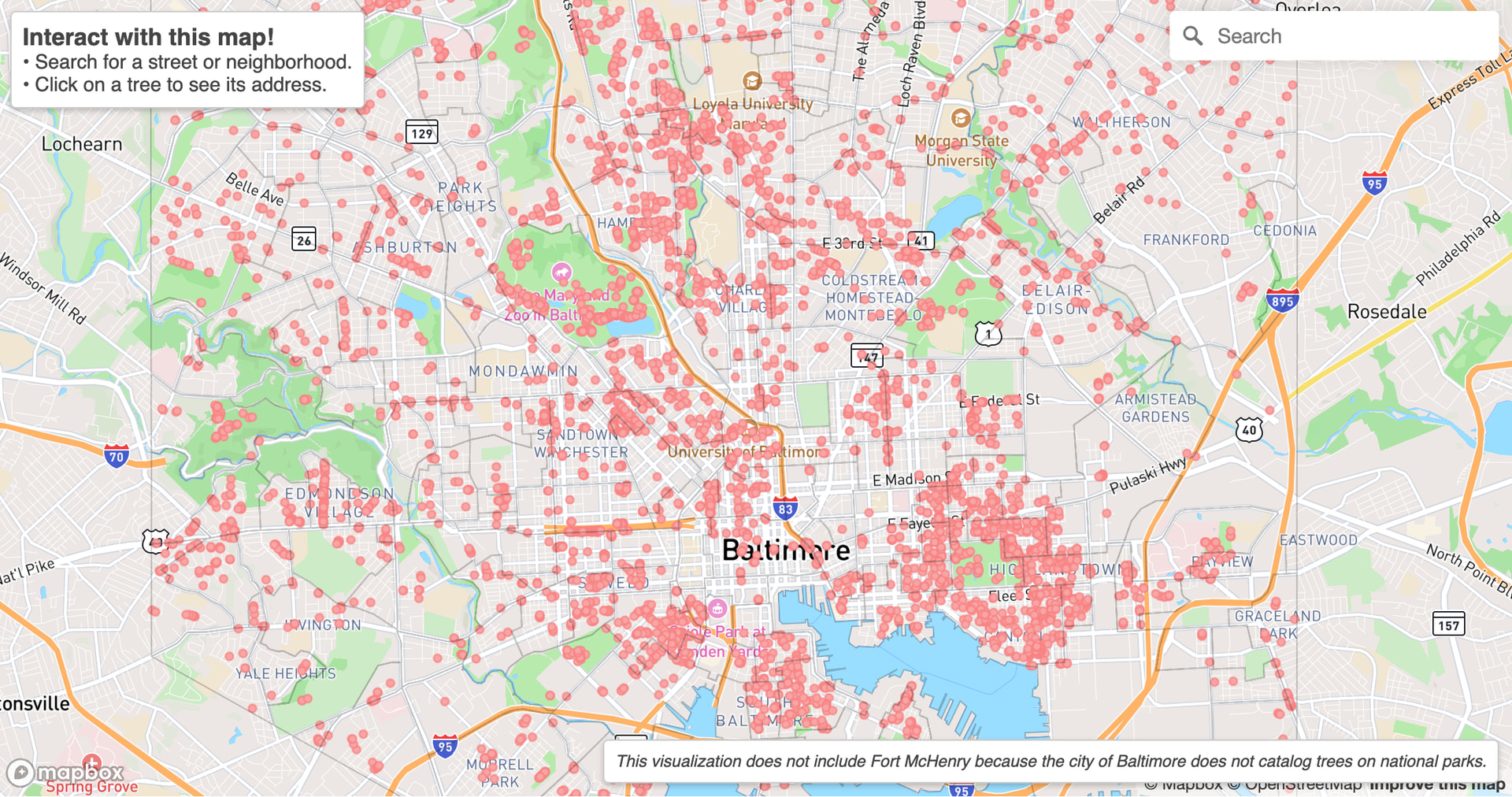 其实Baltimore全城的樱花也不少,而且还有一个交互式网站能显示城里的樱花树分布