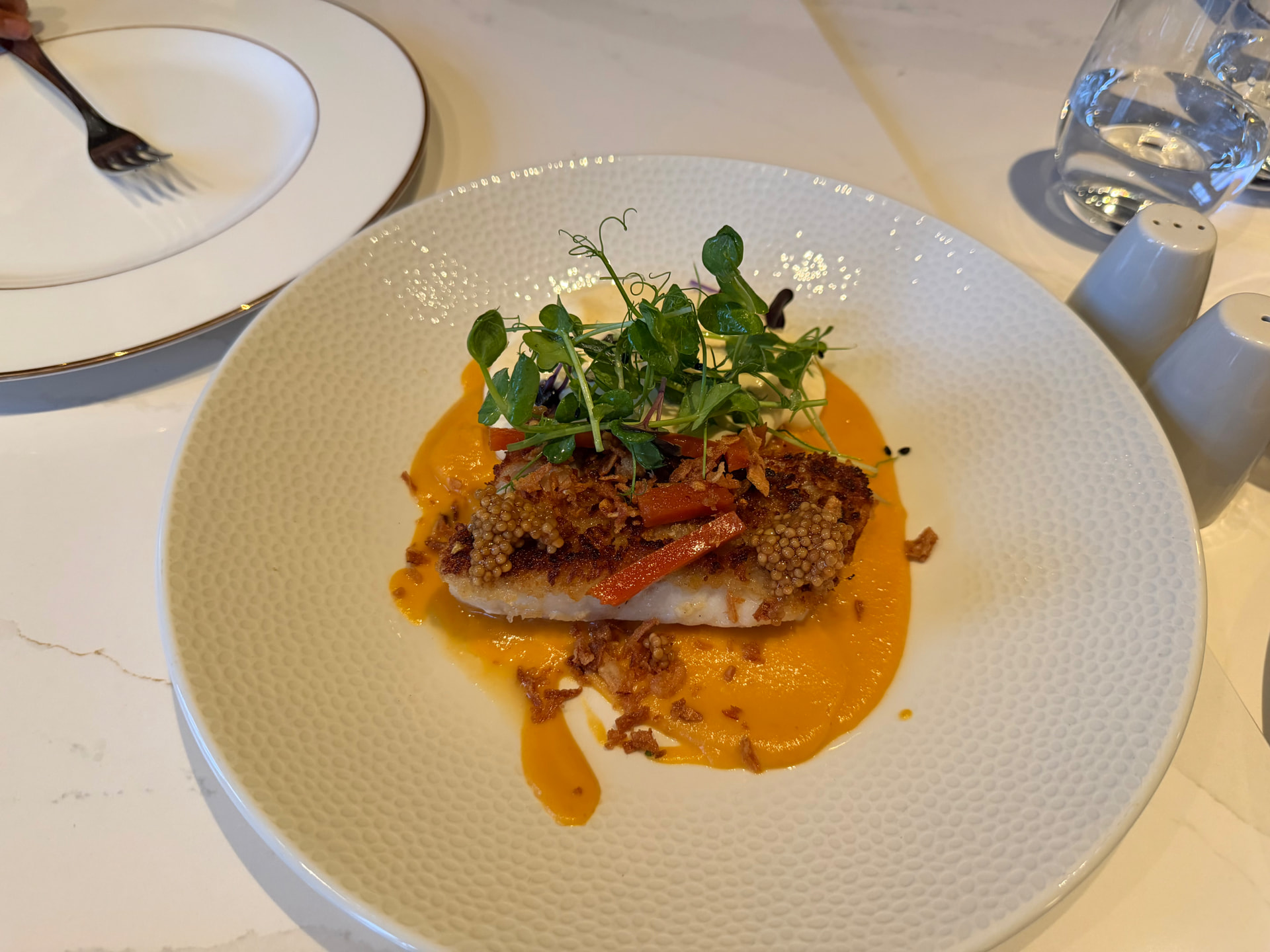 THC的$100的credit也用在了楼下餐厅晚餐。餐厅氛围更偏向fine dining, 但点的cod和lamb fillet并没有特别出色(都是肉本身无味,sauce太咸),反倒是餐前面包深受娃的喜爱。