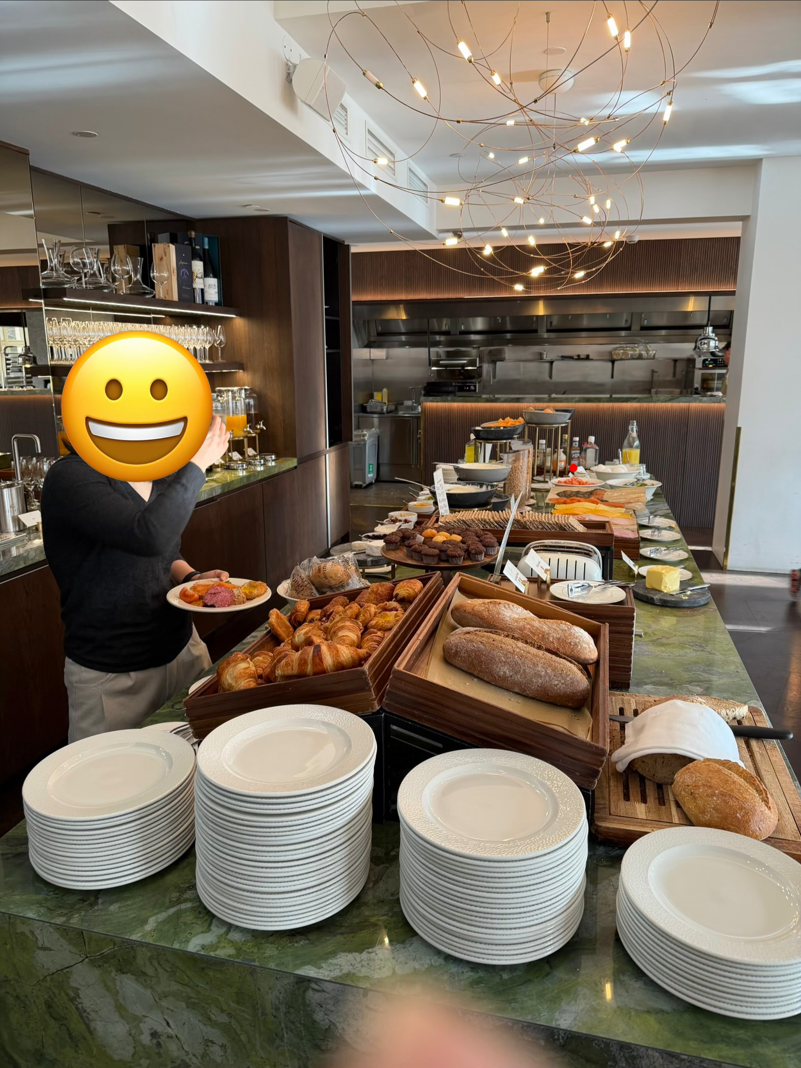 早餐是buffet+单点的鸡蛋和pancake。buffet的选择不如EDITION,但是egg benedict的出品很稳定。蔬菜仍旧是。。。番茄和黄瓜切片。