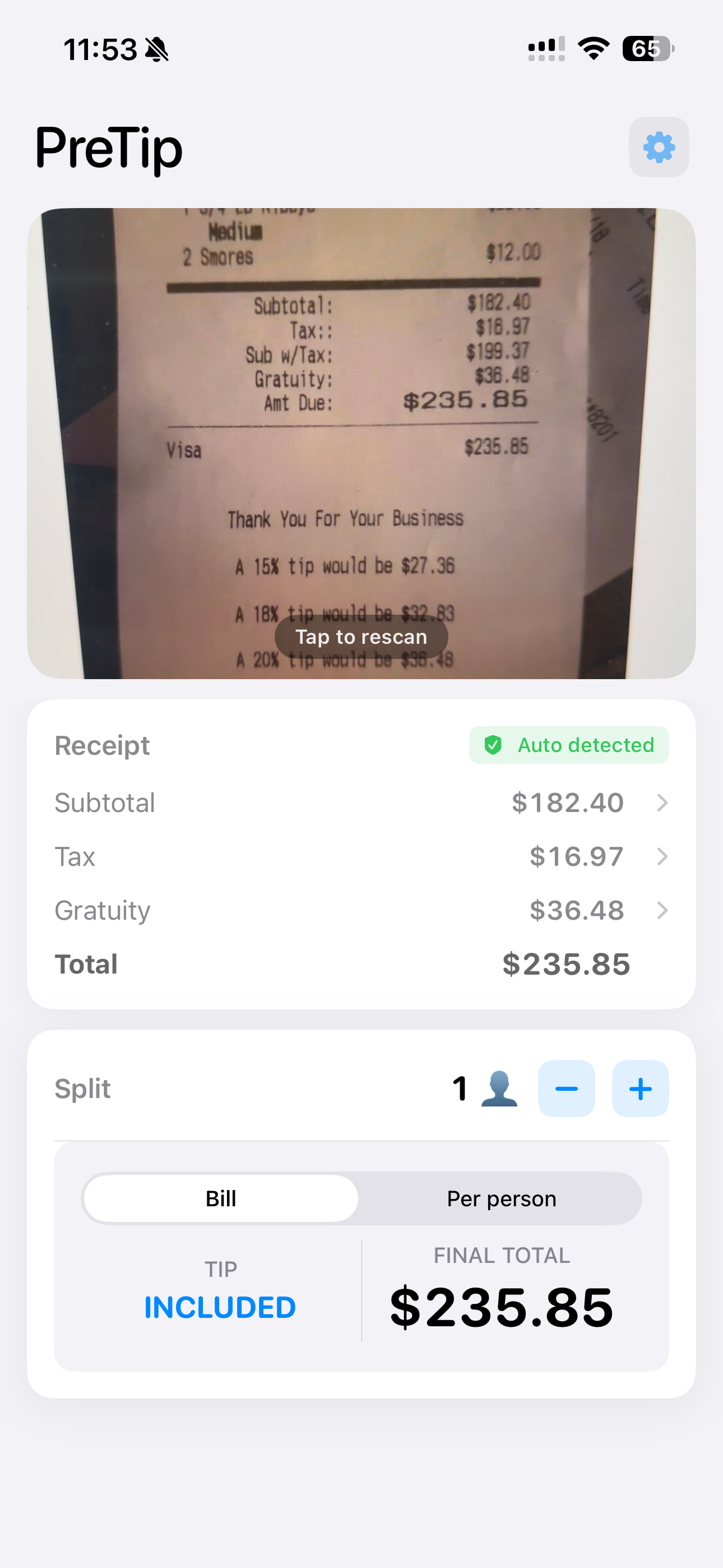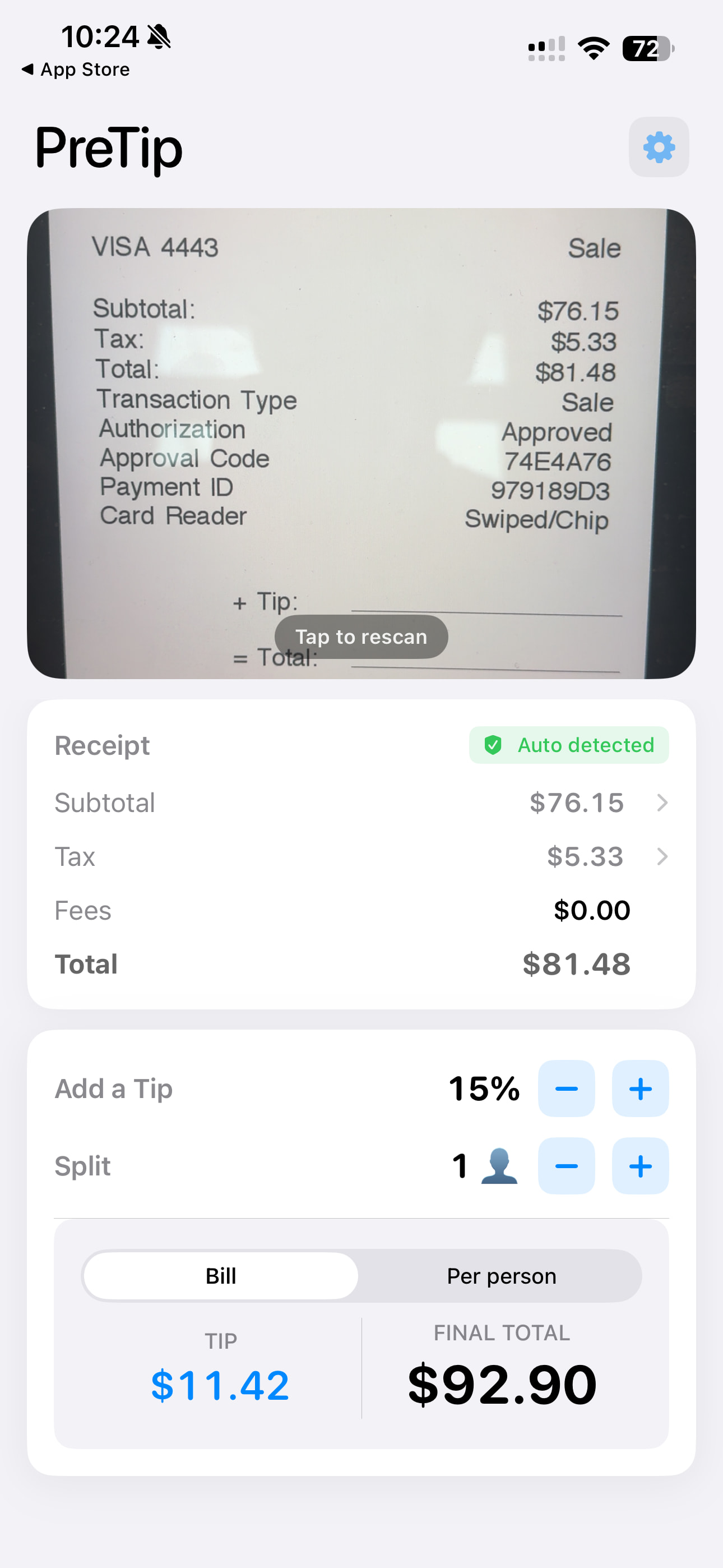 所以我干脆自己做了一个小 app (PreTip: Tip Calculator),主要做一件事: