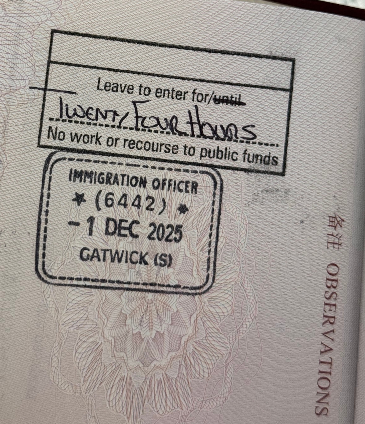 LGW:所有抵达旅客必须入境,白男Border Force业务很熟练但是态度比较铁,整个行程基本问了一遍掏出章来现调的日期盖了…