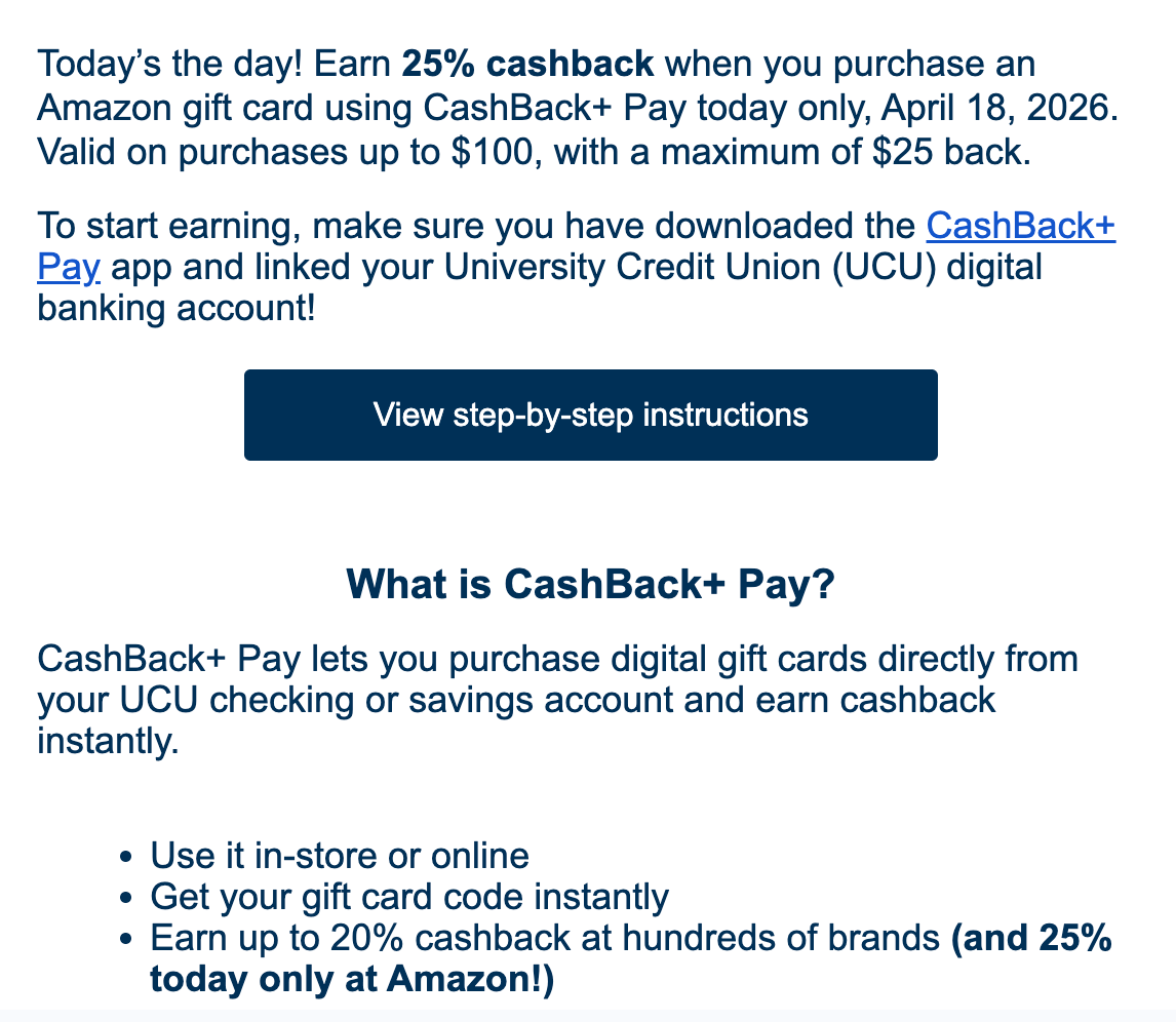 这个app里doordash的优惠也不错,直接给你充到doordash credit里,15%cashback,最多买$200