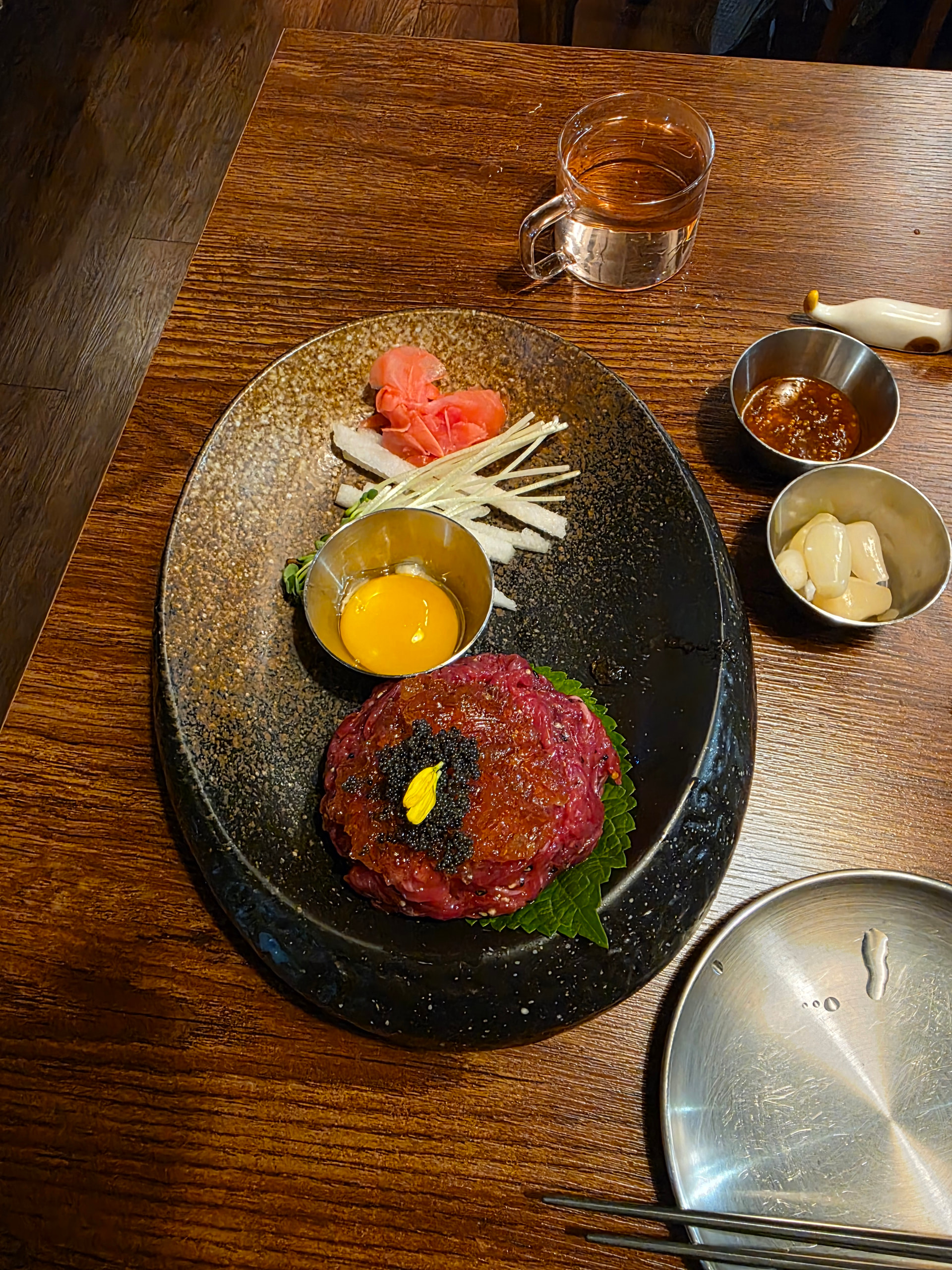 我觉得生牛肉塔塔真的好好吃…虽然我吃的时候基本都是那种黑不愣登点个小蜡烛的店一定程度上减轻了视觉上的不适(