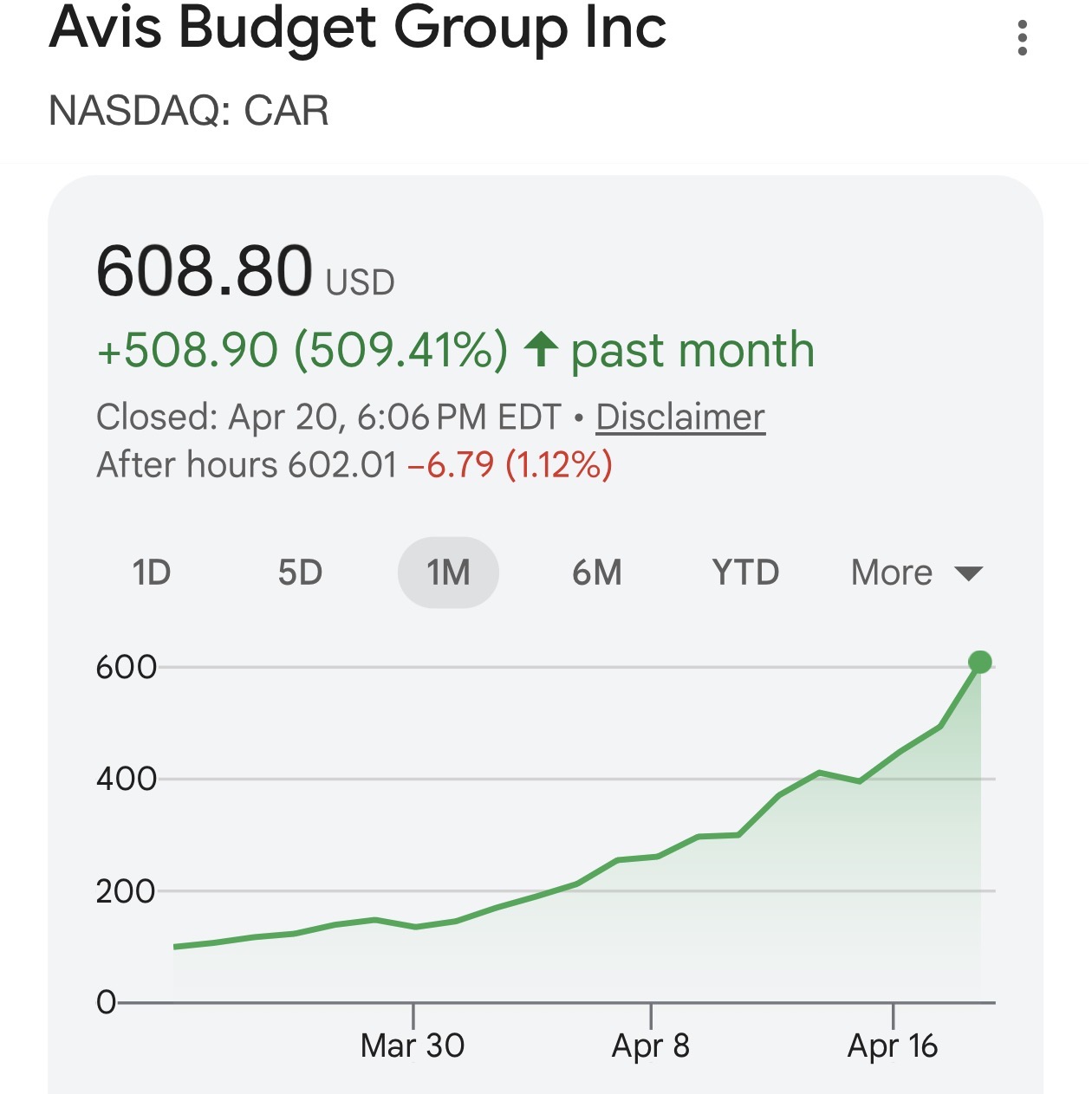 当年好像是hertz?破产重组之后一飞冲天,间接带动了meme股的热潮