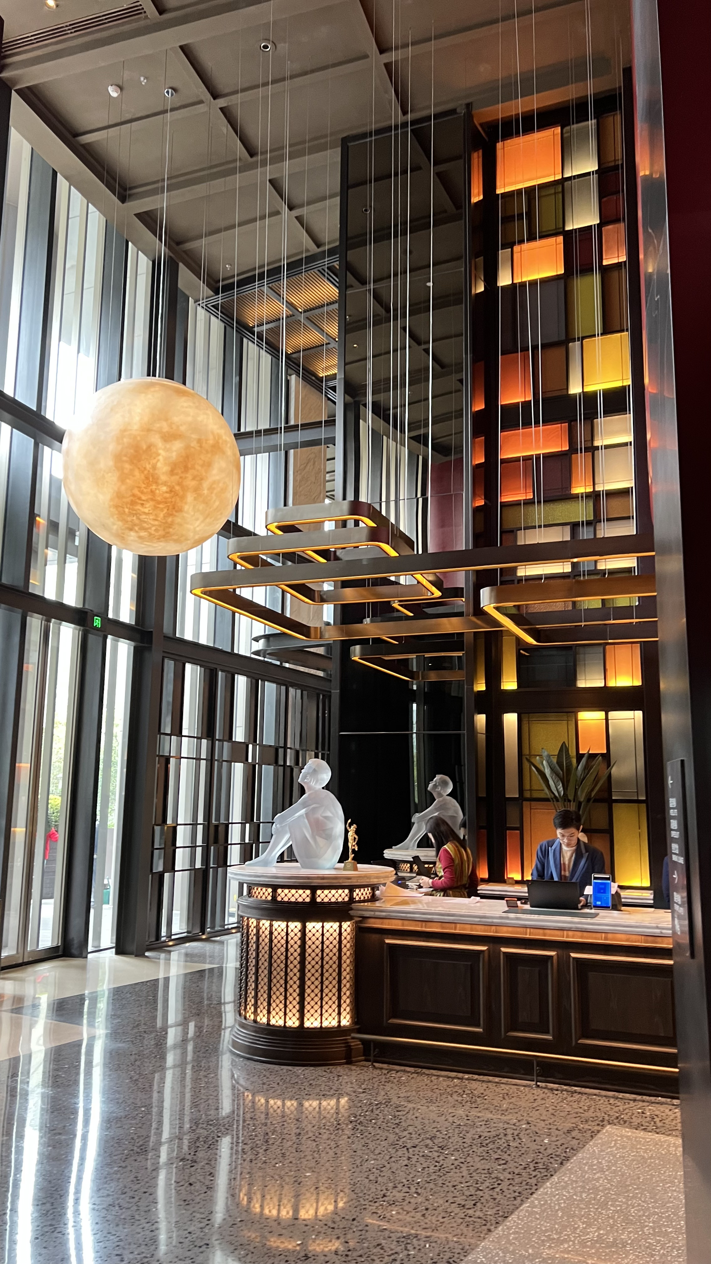 酒店大堂设计的比较现代,有个大月亮和景德镇的凯悦臻选莞莞类卿了。