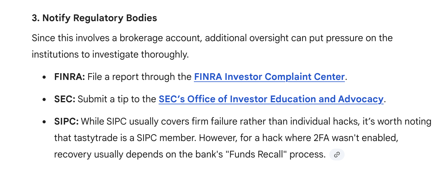 From what we can tell, this account intrusion was not a result of deficiencies of tastytrade systems. It appears that the intruder was in possession of your login credentials and was able to login cleanly at first try. Further, it appears that you did not have two-factor authentication enabled for your account at the time of the unauthorized withdrawal. Unfortunately, this would have likely stopped the wire withdrawal from being requested as it is usually a very effective security measure.