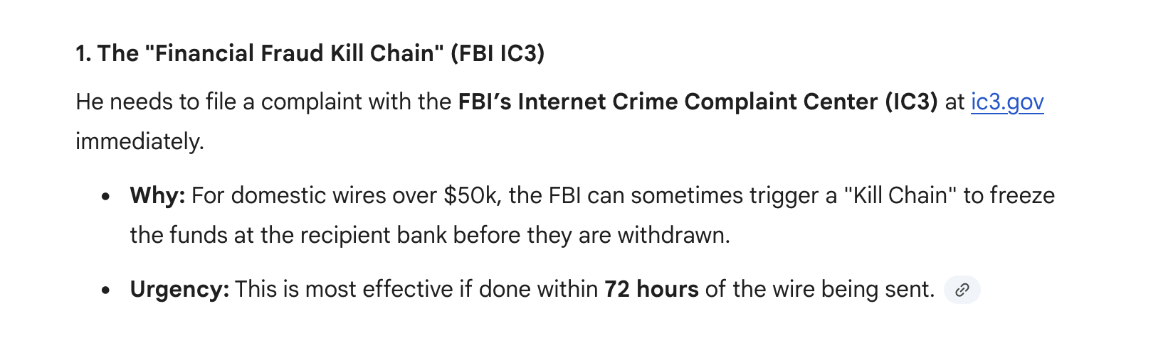 I wanted to let you know that wire withdrawals are extremely difficult to call back as the account intruder will act quickly to try to move the funds further away from the receiving bank account. If we caught this early enough, the return of the funds can take quite a bit of time as the bank needs to complete an investigation on their end. Such investigations can take over 90 days.
