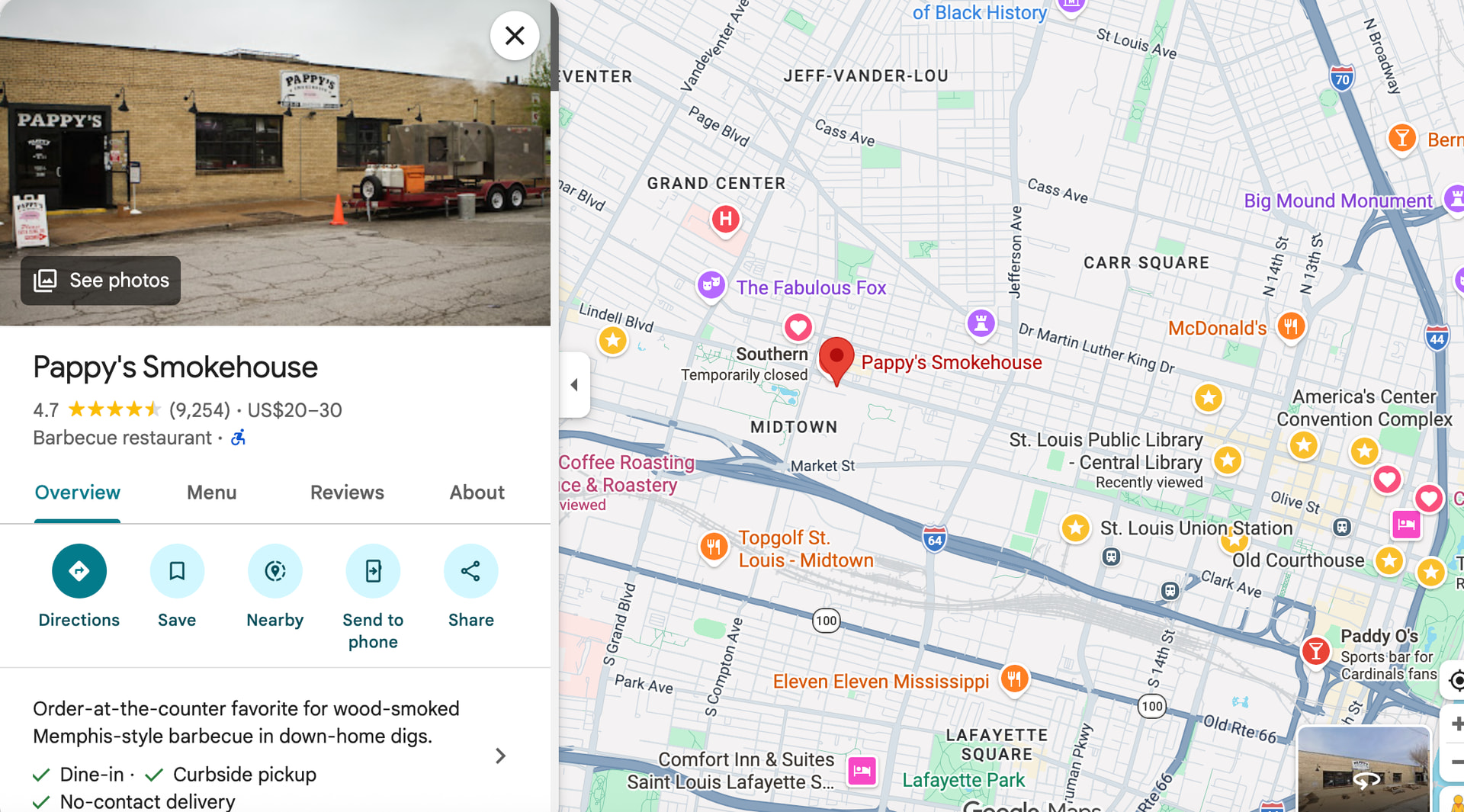 Pappys绝对值得吃,猪肋排很可以。中餐的话,Olive blvd那条街上的cate zone东北菜还可以,晚上有烤串