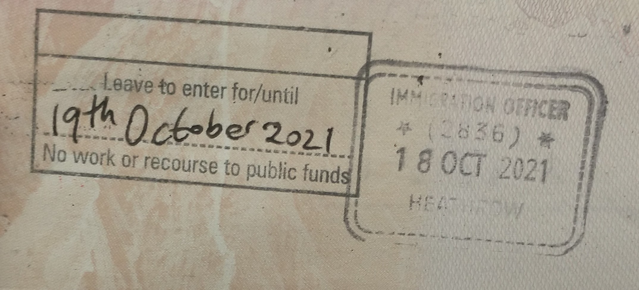 到了LHR以后边检一开始不知道有免签转机这回事,我拿出UK.gov上查询的结果给她看,她就叫来supervisor(就在旁边约20英尺处站着),然后他们俩看到了我的加拿大签证就默认我从加拿大飞来,于是我们只需一起检查我可以入境Gibraltar。中国(或俄罗斯、蒙古等国的)公民有多次申根签证可以免签入境Gibraltar。我有一个三个月多次的法国申根签证,满足这个条件。当然我也把Gibraltar旅游局网站的信息给他们看。检查完了以后她还不知道要给我几天入境期限,还要看旁边墙上贴着的纸。最后打指纹后放行,结果是标准的,准予停留至明天。