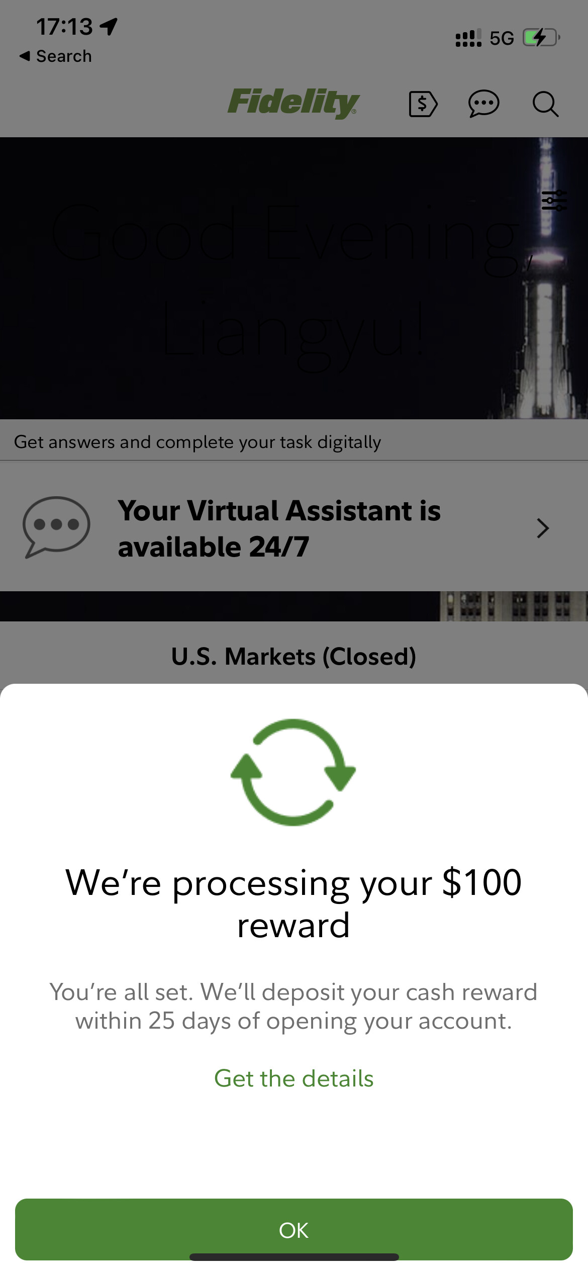 今天收到邮件说我又15天fund 50块钱,然后获得109刀奖励