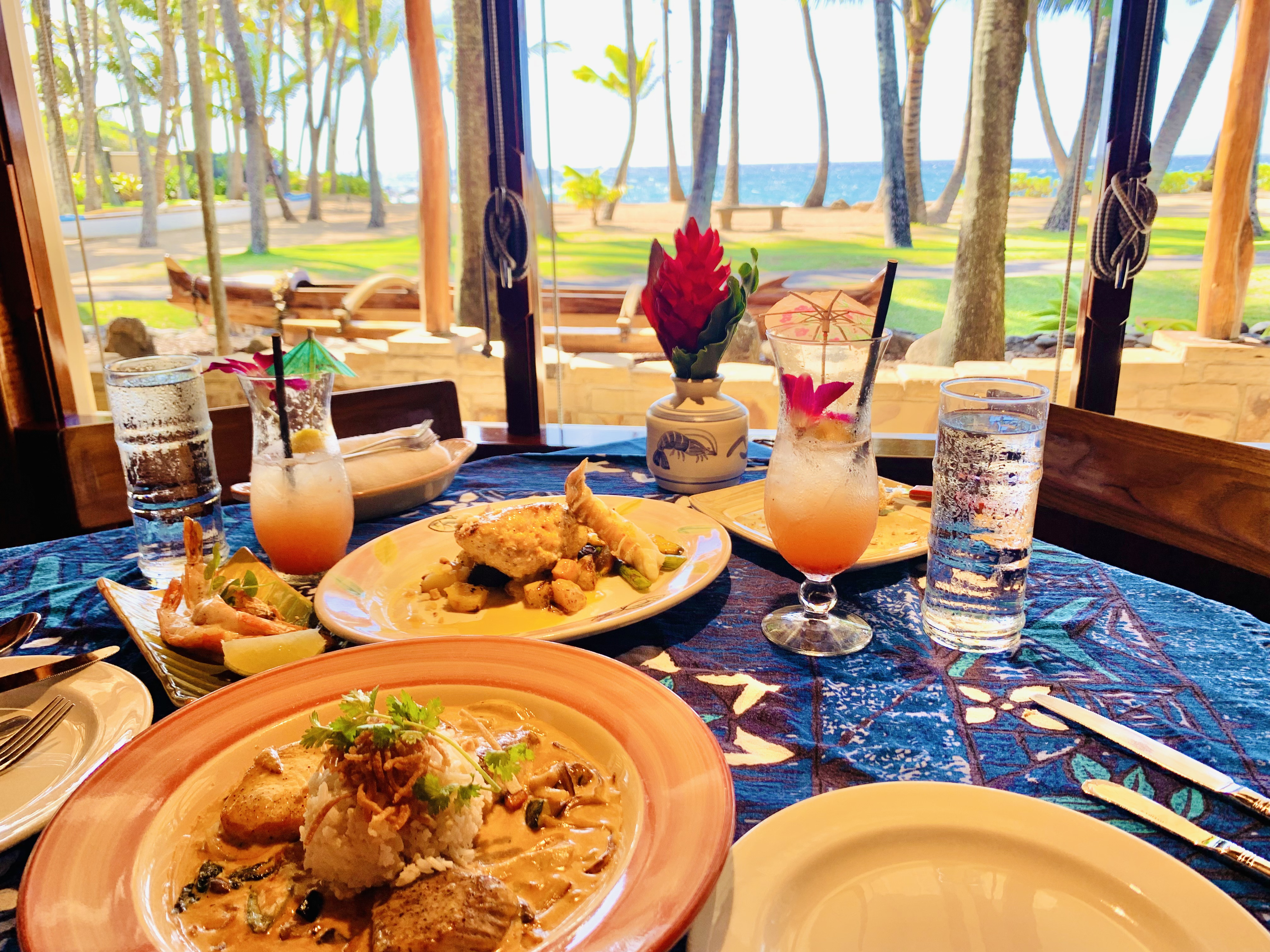 Mama’s fish house非常超出预期,是我们在Maui最惊喜性价比最高的一顿,看来火到预定不上是有原因的。提前2个月预定的时候其实已经没有位置了,我们是在Opentable上设置了提醒,然后出发前一天捡漏捡到的。到的时候非常幸运的被安排在了靠窗的桌子吹海风看海景。