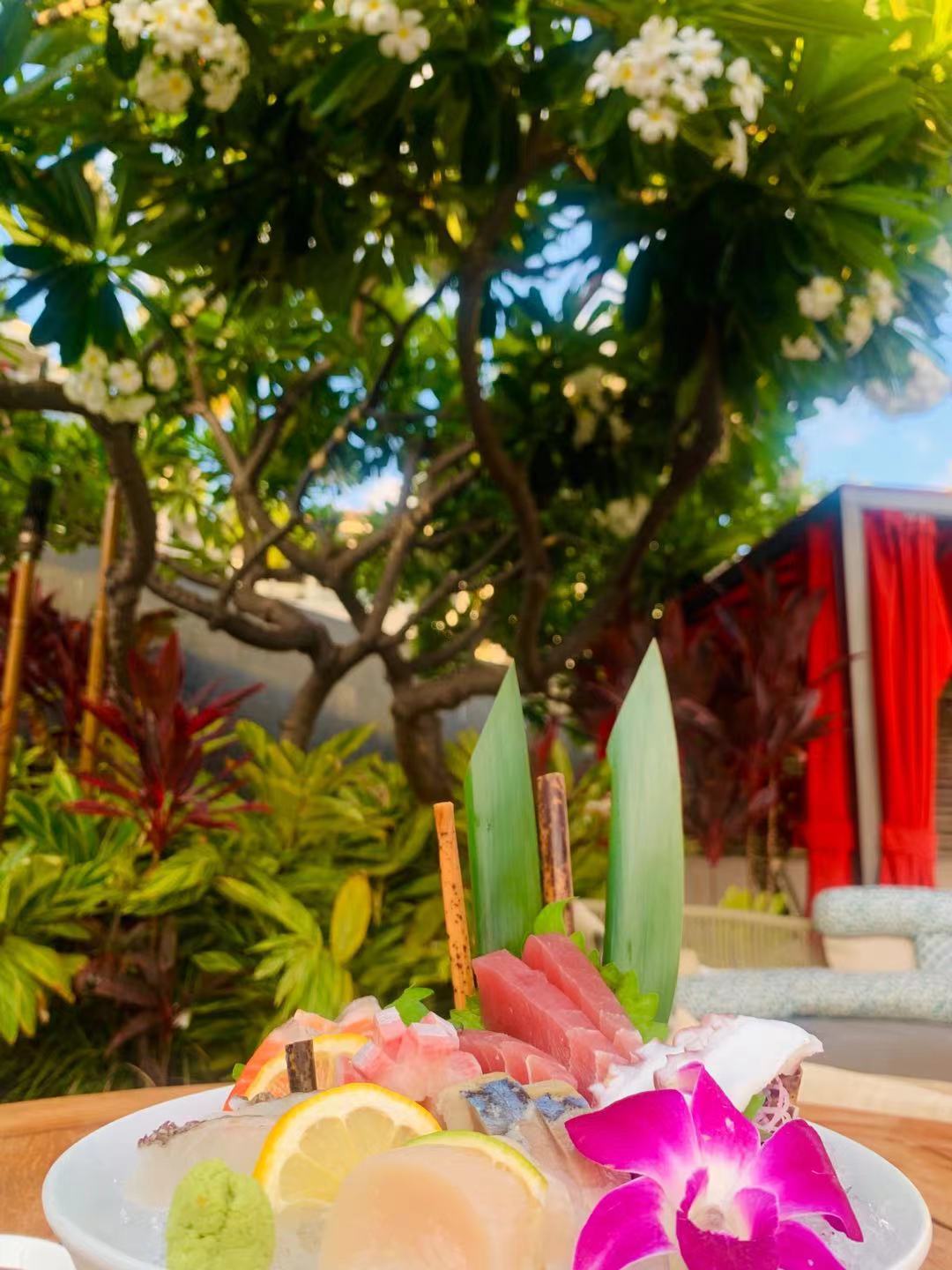 关于茂宜岛的吃:茂宜岛Wailea地区吃饭最大的特点就是贵!且非常一般。早餐在酒店餐厅一份avocado toast一份omelette两杯咖啡就花了$80。另外点名锤一下Andaz的Morimoto,去之前看到他们家菜非常有创意,小红书上各种打卡。但我们去了之后发现,因为疫情的原因菜单已经换过了,之前那些非常受欢迎但成本高的菜都没了,点了sashimi omakasei,煎饺,A5牛排,海胆,基本就是average日料店的水准毫无特色,服务也巨差。唯一的优势就是蹭着Andaz的景比较好了。