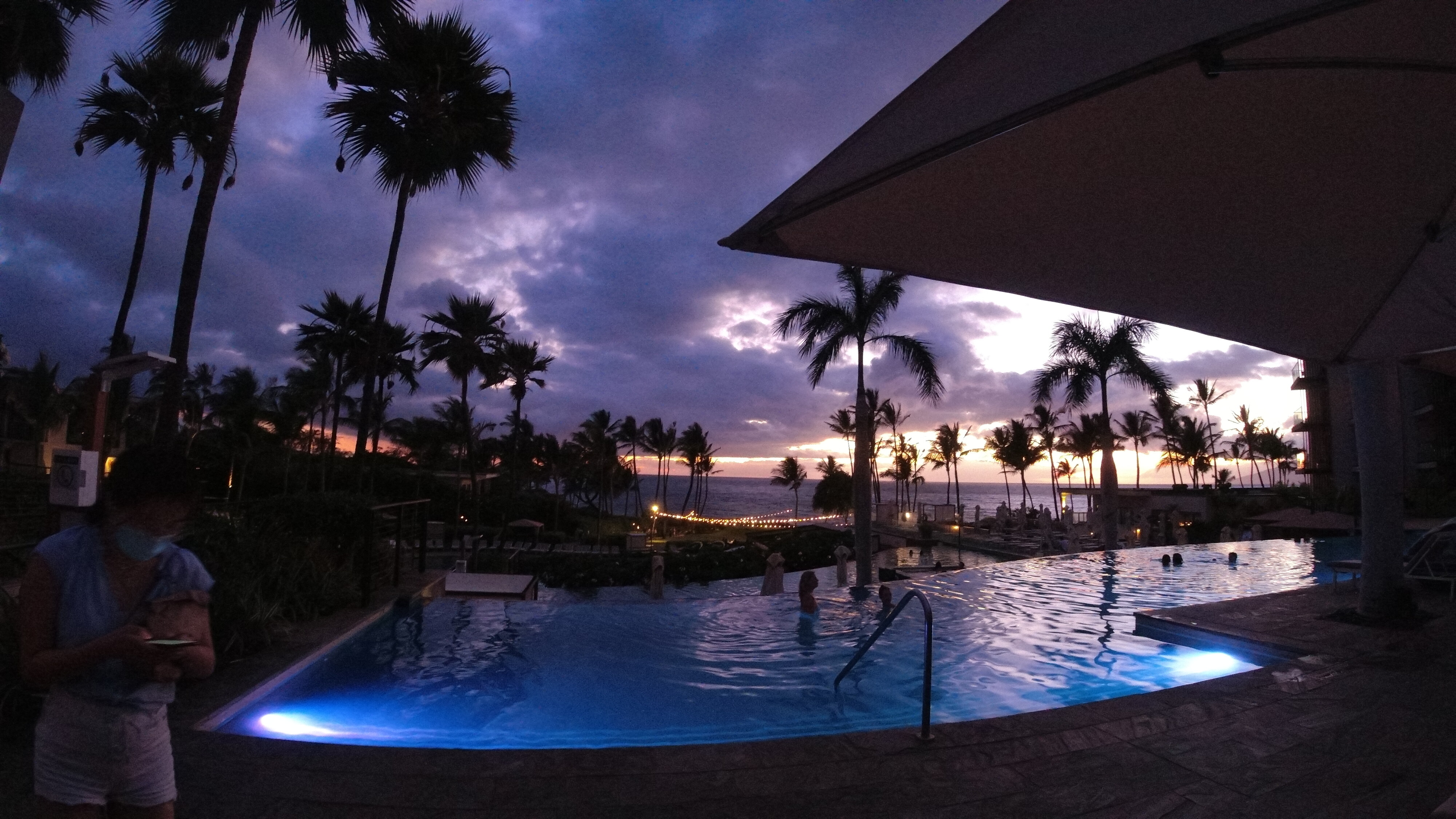 总体来说入住体验我还是很满意的,我很喜欢他家的室外景观。Marriott没有自己的沙滩(都是草地),但可以沿海边步行5分钟到隔壁的沙滩。另外这里带娃的比较少,有Adult only的泳池,相对Grant Wailea没有那么吵闹。Room service也很及时,还会给你留手写小卡片。