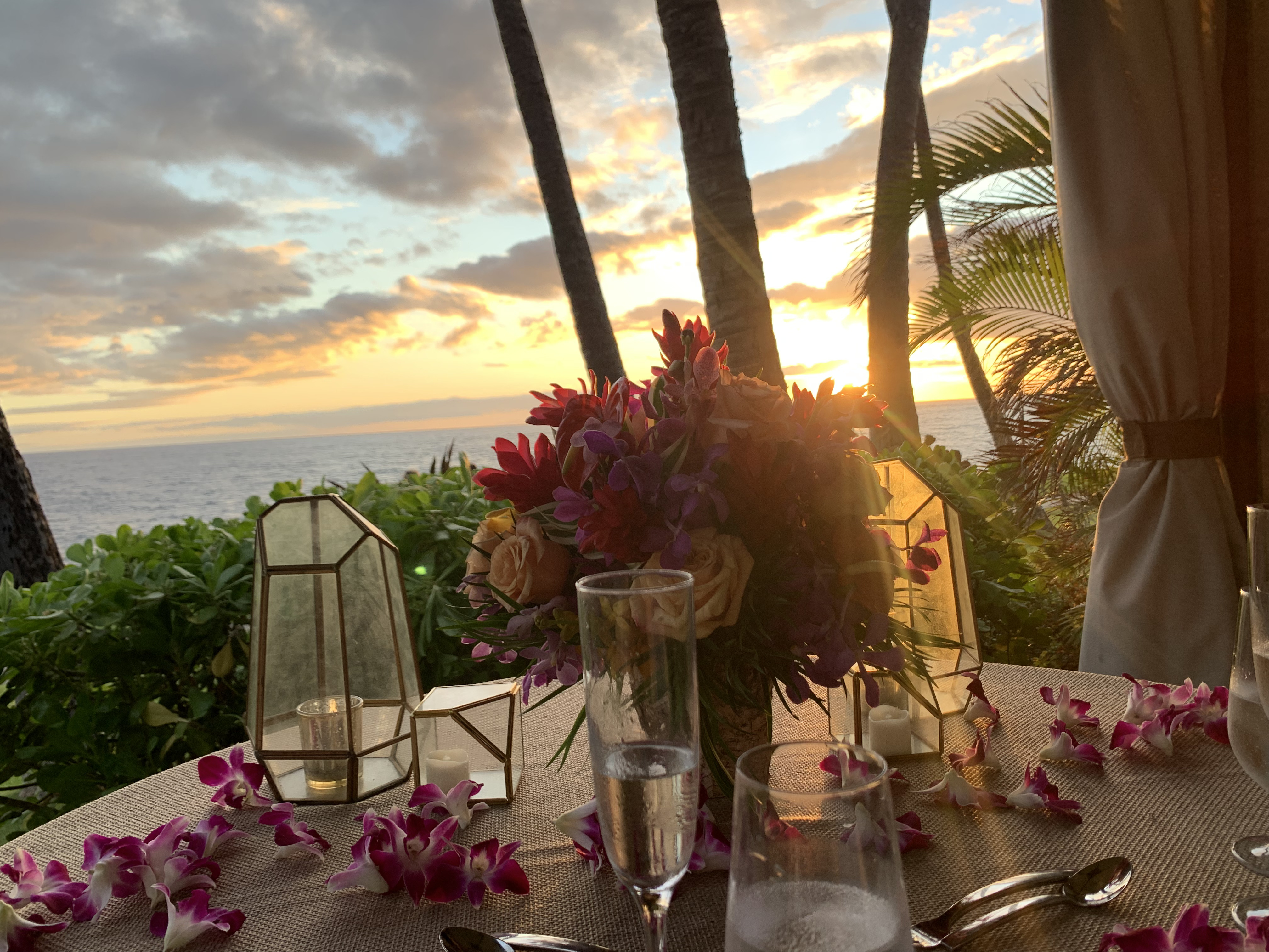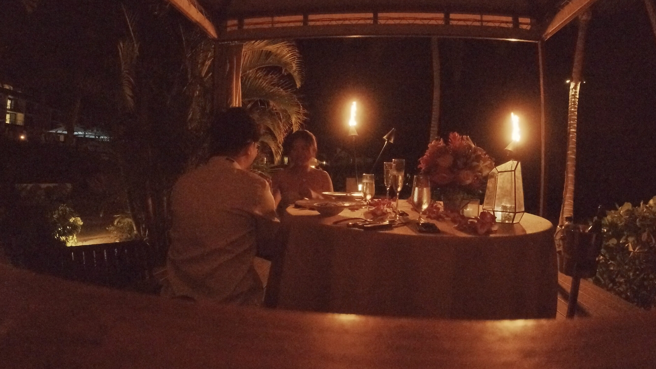 为了求婚预定的cabana candlelight dinner(两个人定价$650),特地选在了人比较少的位置,原计划是在日落的时候&甜点之前求婚,结果菜上的太慢,求婚的时候已经天黑了