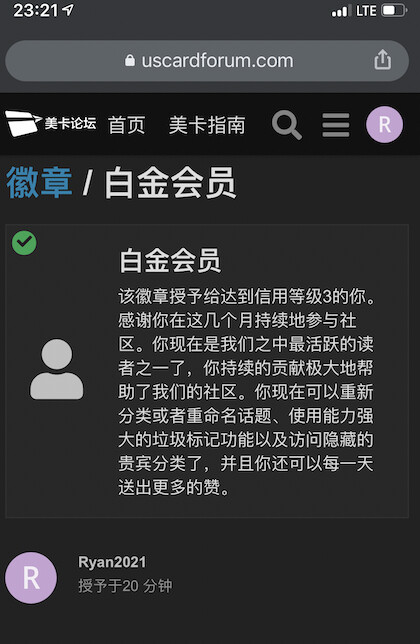 昨晚手机刷美卡的时候,突然发现自己白金了。