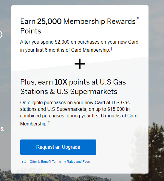 第一次好像就是登录后在 Credit Cards - Compare & Apply Online | American Express 看到的。过段时间在那个页面上找不到了,但在online account和手机app的gold卡那里有显示 Request an Upgrade