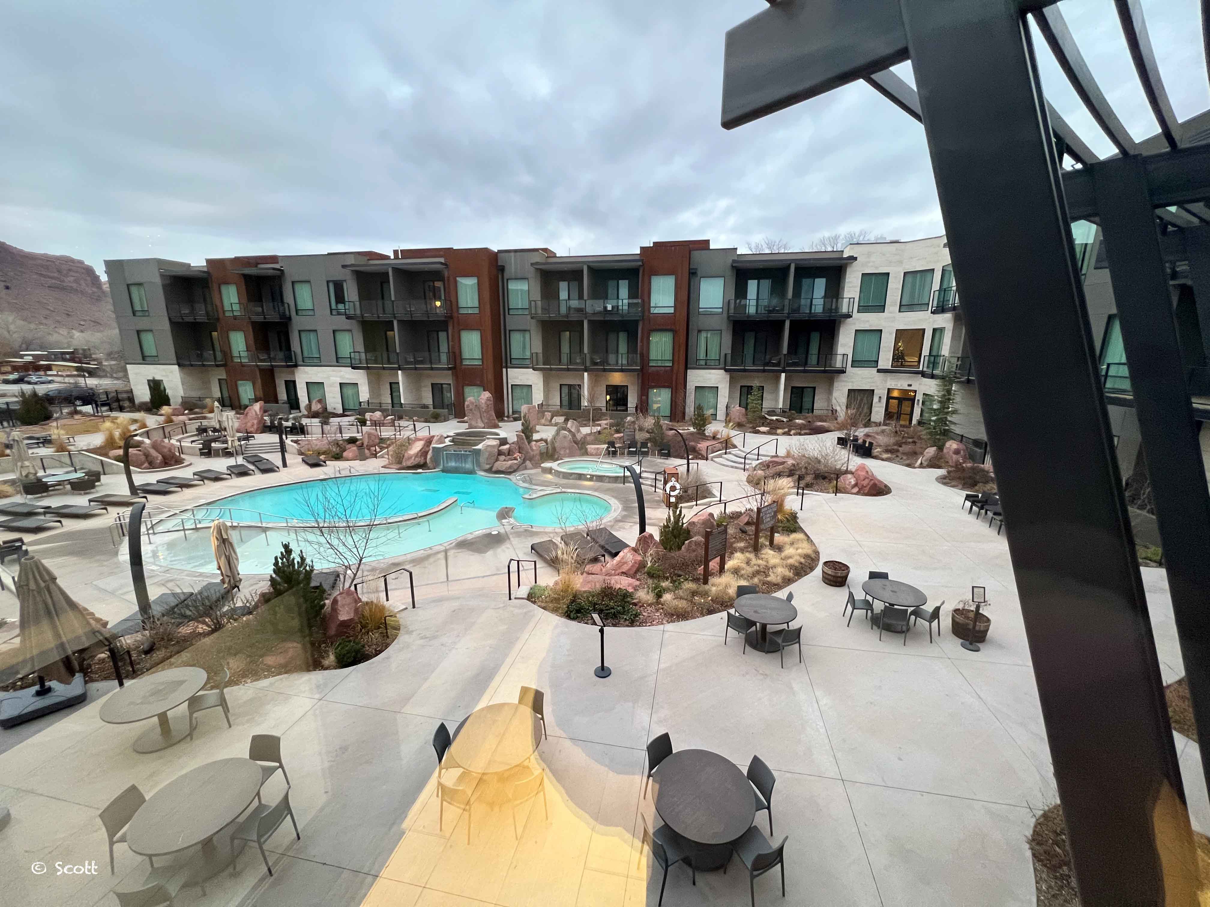 酒店有露天加热泳池和hot tub,看到里面的游客都不戴口罩,我们怕毒没敢体验 ![]()
