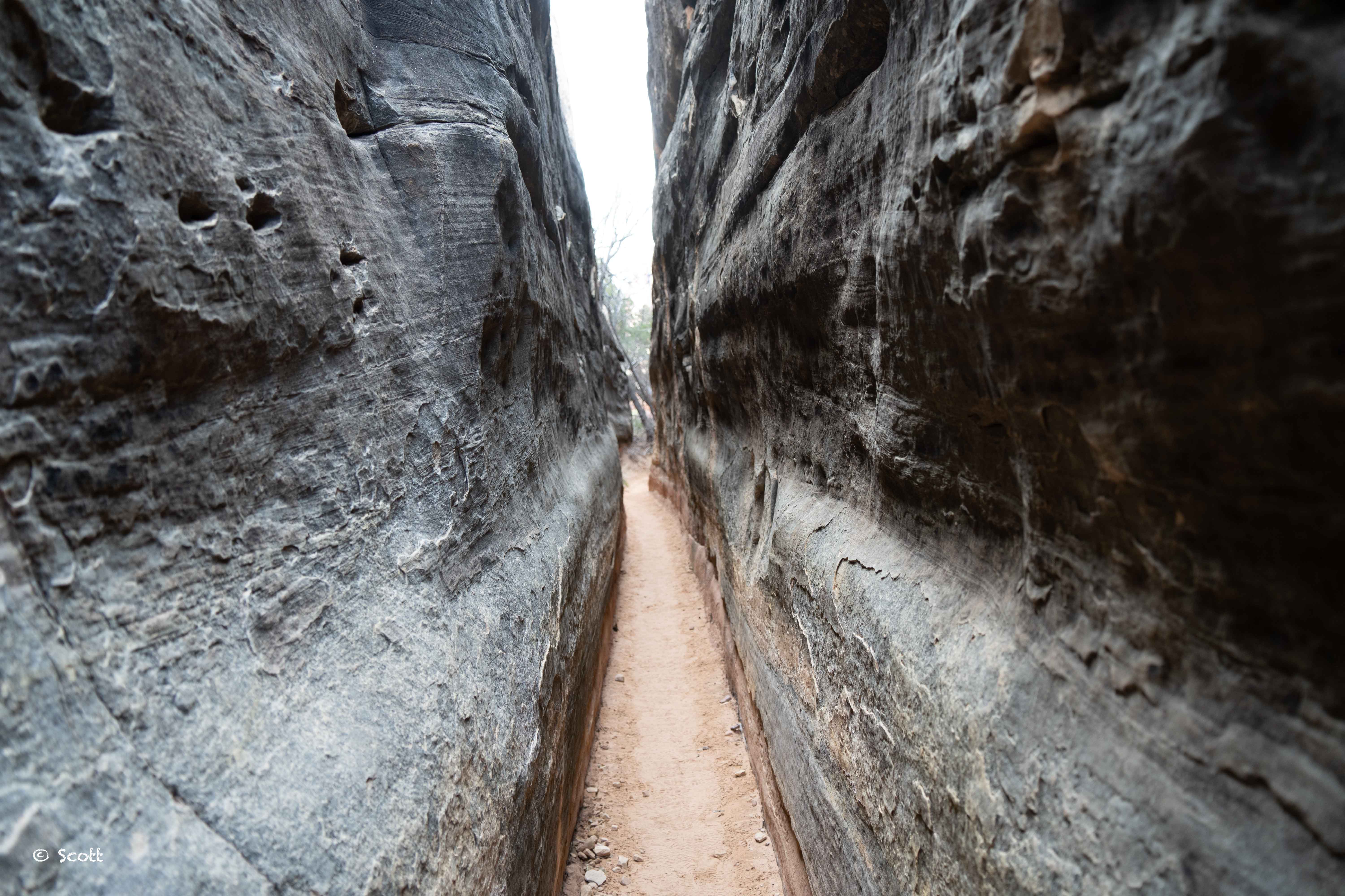 到德鲁伊拱门会经过两条非常窄的峡谷,有时需要蹭着墙蜷缩进去,好像国内有些三俗景区叫这种步道“摸乳巷”……