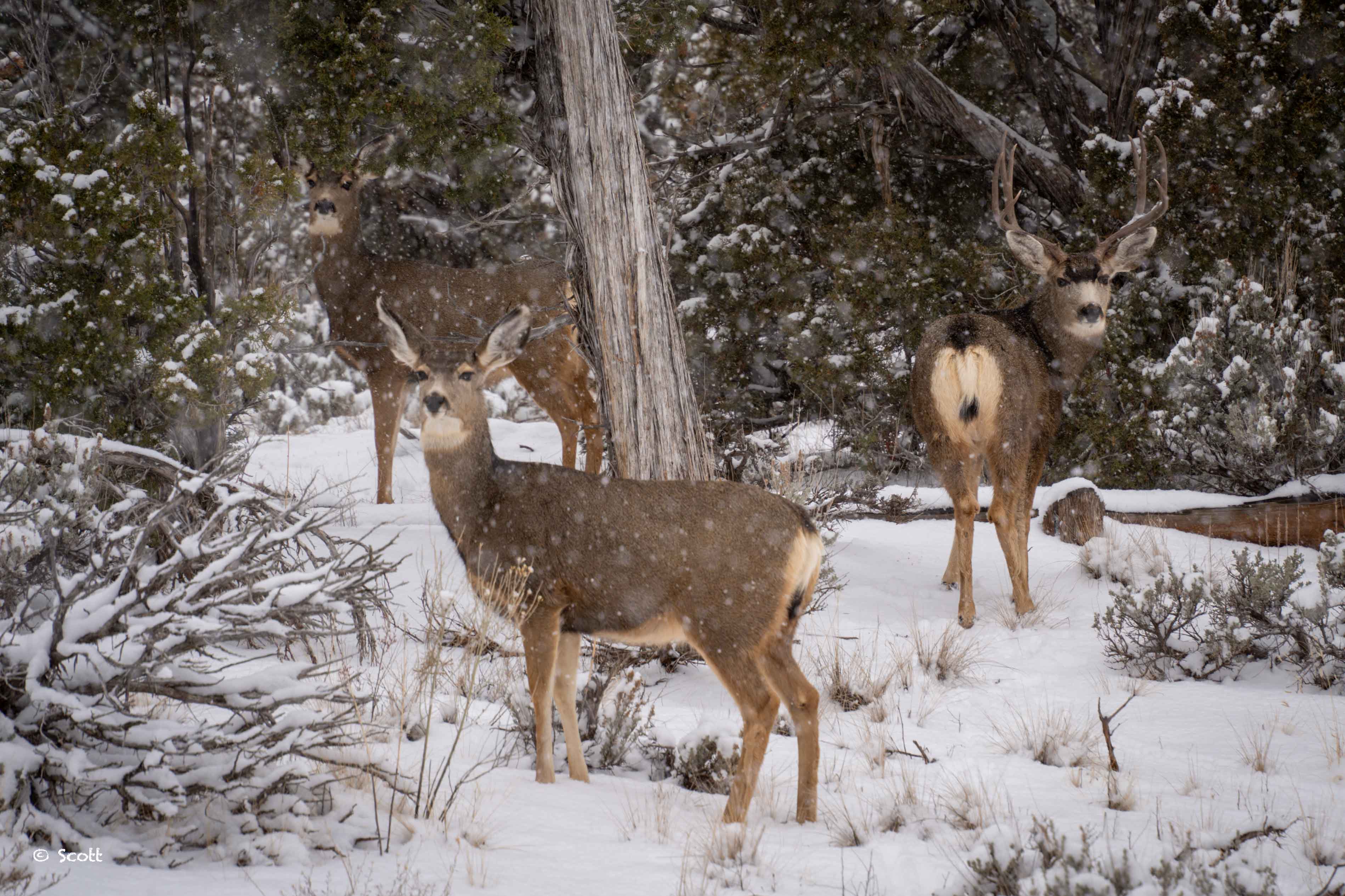 去天然桥国家纪念地当天游客很少,这也给了我们捕捉野生动物的机会。模仿狼叫了两声,居然真的都回头了,这张图可以叫三鹿 ![]()