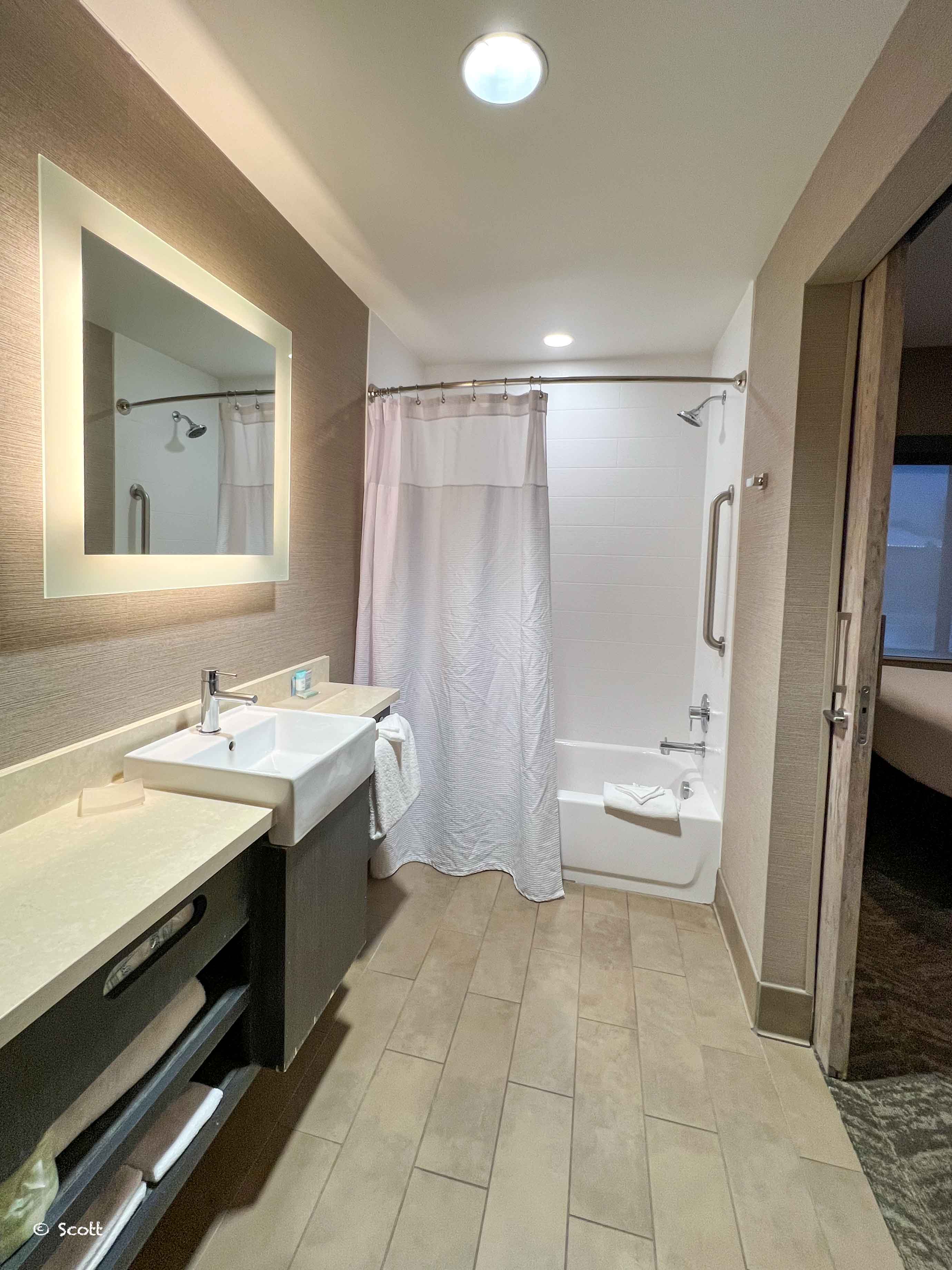 厕所也是傻大,不过厕所门上没有锁,只是简单的推拉门,不只是酒店的feature还是这个房间的feature…